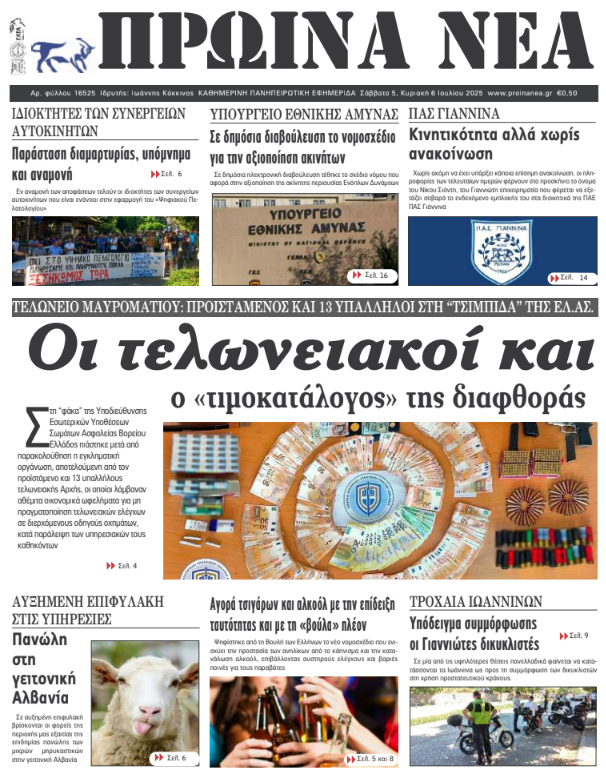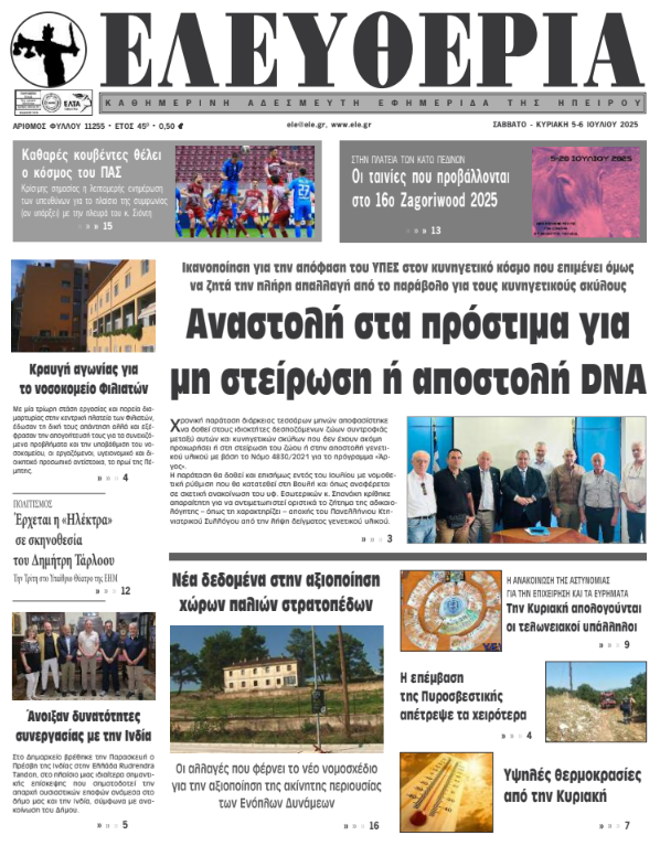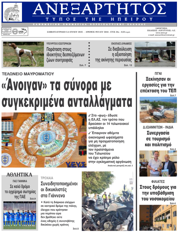 ΑρχικήΕΙΔΗΣΕΙΣΗΠΕΙΡΟΣ ΗΠΕΙΡΟΣ Τα πρωτοσέλιδα των γιαννιώτικων εφημερίδων 05.07.2025 0 FacebookTwitterWhatsAppEmailΤυπώνωViber Διαβάστε στα πρωτοσέλιδα των γιαννιώτικων εφημερίδων 5-6 Ιουλίου 2025 TagsΓΙΑΝΝΙΩΤΙΚΕΣ ΕΦΗΜΕΡΙΔΕΣΠΡΩΤΟΣΕΛΙΔΑ FacebookTwitterWhatsAppEmailΤυπώνωViber Προηγούμενο άρθροΕΛΓΟ – ΔΗΜΗΤΡΑ -Ξεκινούν οι εγγραφές στη Γαλακτοκομική ΣχολήΕπόμενο άρθροΤα του Καίσαρος… ΣΧΕΤΙΚΑ ΑΡΘΡΑ Τα πρωτοσέλιδα των γιαννιώτικων εφημερίδων TOP STORIES 10.12.2025 Τα πρωτοσέλιδα των γιαννιώτικων εφημερίδων ΗΠΕΙΡΟΣ 09.12.2025 Τα πρωτοσέλιδα των γιαννιώτικων εφημερίδων ΗΠΕΙΡΟΣ 06.12.2025 Τα πρωτοσέλιδα των γιαννιώτικων εφημερίδων ΗΠΕΙΡΟΣ 05.12.2025 Τα πρωτοσέλιδα των γιαννιώτικων εφημερίδων ΗΠΕΙΡΟΣ 04.12.2025 Τα πρωτοσέλιδα των γιαννιώτικων εφημερίδων ΗΠΕΙΡΟΣ 03.12.2025 ΣΤΗΝ ΙΔΙΑ ΚΑΤΗΓΟΡΙΑ Κλειστός ο Δήμος Βορείων Τζουμέρκων στις 16 Δεκεμβρίου ΗΠΕΙΡΟΣ 10.12.2025 Ενημερωτικά σήματα ενάντια στη βία κατά των γυναικών ΗΠΕΙΡΟΣ 10.12.2025 Στήνεται το Χριστουγεννιάτικο δένδρο στην πλατεία – Το Σάββατο η φωταγώγηση ΗΠΕΙΡΟΣ 10.12.2025 Συνελήφθη διωκόμενος για ληστεία και φθορά ξένης ιδιοκτησίας ΗΠΕΙΡΟΣ 10.12.2025 Συντήρηση αθλητικών εγκαταστάσεων σε Λιμνοπούλα και Πανηπειρωτικό ΗΠΕΙΡΟΣ 10.12.2025 Έκτακτη Γενική Συνέλευση της Π.Ε.Δ. Ηπείρου για τα προβλήματα των ΟΤΑ ΗΠΕΙΡΟΣ 10.12.2025 ΜΗ ΧΑΣΕΤΕ Στήνεται το Χριστουγεννιάτικο δένδρο στην πλατεία – Το Σάββατο η φωταγώγηση Εισαγγελική παρέμβαση για τις αγροτικές κινητοποιήσεις Μια νέα πρόταση για την ενοποίηση της πλατείας Ιωαννίνων Τα πρωτοσέλιδα των γιαννιώτικων εφημερίδων Εγκρίθηκε η χωροθέτηση των νέων «έξυπνων» υποδομών ΔΗΜΟΦΙΛΗ Τα πρωτοσέλιδα των γιαννιώτικων εφημερίδων Στήνεται το Χριστουγεννιάτικο δένδρο στην πλατεία – Το Σάββατο η φωταγώγηση Ενημερωτικά σήματα ενάντια στη βία κατά των γυναικών Φοινικούντα: Συνελήφθησαν ο ανιψιός του ιδιοκτήτη κάμπινγκ και ένας 32χρονος Κατέρρευσαν δύο κτίρια στο Μαρόκο – Τουλάχιστον 19 νεκροί
