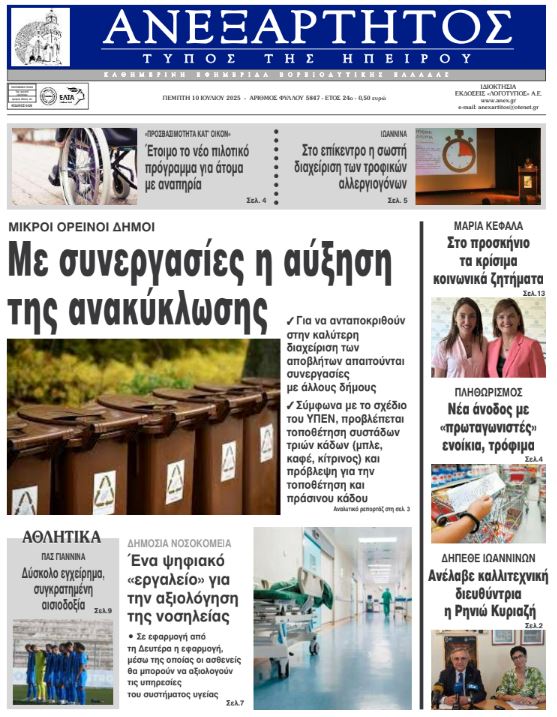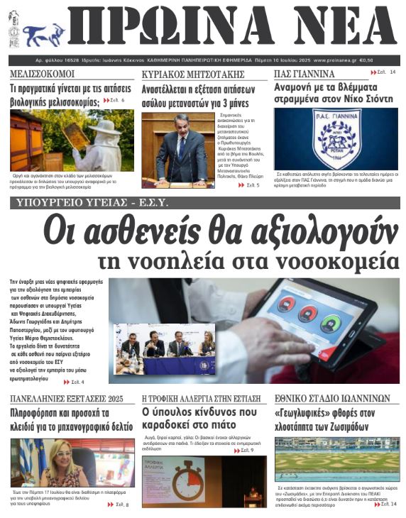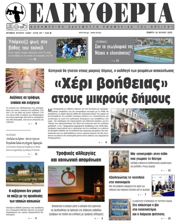 ΑρχικήΕΙΔΗΣΕΙΣΗΠΕΙΡΟΣ ΗΠΕΙΡΟΣ Τα πρωτοσέλιδα των γιαννιώτικων εφημερίδων 10.07.2025 0 FacebookTwitterWhatsAppEmailΤυπώνωViber Διαβάστε στα πρωτοσέλιδα των γιαννιώτικων εφημερίδων Πέμπτη 10 Ιουλίου 2025 TagsΓΙΑΝΝΙΩΤΙΚΕΣ ΕΦΗΜΕΡΙΔΕΣΠΡΩΤΟΣΕΛΙΔΑ FacebookTwitterWhatsAppEmailΤυπώνωViber Προηγούμενο άρθροΕΟΔΥ: 4 κρούσματα της λοίμωξης του ιού του Δυτικού Νείλου στην ΑττικήΕπόμενο άρθροΤροφικές αλλεργίες και κοινωνικός αποκλεισμός ΣΧΕΤΙΚΑ ΑΡΘΡΑ Τα πρωτοσέλιδα των γιαννιώτικων εφημερίδων TOP STORIES 22.11.2025 Τα πρωτοσέλιδα των γιαννιώτικων εφημερίδων ΗΠΕΙΡΟΣ 21.11.2025 Τα πρωτοσέλιδα των γιαννιώτικων εφημερίδων TOP STORIES 20.11.2025 Τα πρωτοσέλιδα των γιαννιώτικων εφημερίδων ΗΠΕΙΡΟΣ 19.11.2025 Τα πρωτοσέλιδα των γιαννιώτικων εφημερίδων ΗΠΕΙΡΟΣ 18.11.2025 Τα πρωτοσέλιδα των γιαννιώτικων εφημερίδων ΗΠΕΙΡΟΣ 15.11.2025 ΣΤΗΝ ΙΔΙΑ ΚΑΤΗΓΟΡΙΑ Τροχαίο με δύο τραυματίες στην Καστρίτσα από εκτροπή ΙΧ ΗΠΕΙΡΟΣ 23.11.2025 Κλειστός ο δρόμος Παλαιοχωρίου–Συρράκου λόγω καθίζησης ΗΠΕΙΡΟΣ 23.11.2025 Τραγωδία στους Κιρκιζάτες με έναν νεκρό και μία γυναίκα σε νοσηλεία ΗΠΕΙΡΟΣ 23.11.2025 Βροχές, χιόνια και χαμηλές θερμοκρασίες στην Ήπειρο ΗΠΕΙΡΟΣ 23.11.2025 Ενθρονίστηκε στο Δελβινάκι ο νέος Μητροπολίτης Αλέξιος ΗΠΕΙΡΟΣ 23.11.2025 Καθιζήσεις, πλημμύρες και εκτεταμένες κατολισθήσεις στα Τζουμέρκα ΗΠΕΙΡΟΣ 23.11.2025 ΜΗ ΧΑΣΕΤΕ Βροχές, χιόνια και χαμηλές θερμοκρασίες στην Ήπειρο Ενθρονίστηκε στο Δελβινάκι ο νέος Μητροπολίτης Αλέξιος Καθιζήσεις, πλημμύρες και εκτεταμένες κατολισθήσεις στα Τζουμέρκα Ικανοποίηση για τη μείωση της ανεργίας Τα πρωτοσέλιδα των γιαννιώτικων εφημερίδων ΔΗΜΟΦΙΛΗ Τραγωδία στους Κιρκιζάτες με έναν νεκρό και μία γυναίκα σε νοσηλεία Δράσεις ενημέρωσης για τον Σεισμικό Κίνδυνο Καθιζήσεις, πλημμύρες και εκτεταμένες κατολισθήσεις στα Τζουμέρκα Κλειστός ο δρόμος Παλαιοχωρίου–Συρράκου λόγω καθίζησης 81.651 αιτήσεις στο North Evia Pass 2025