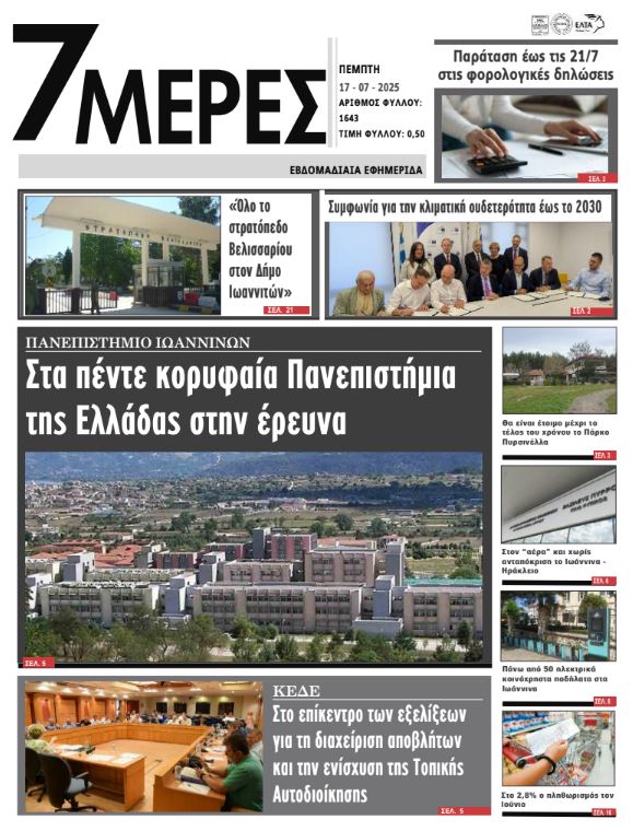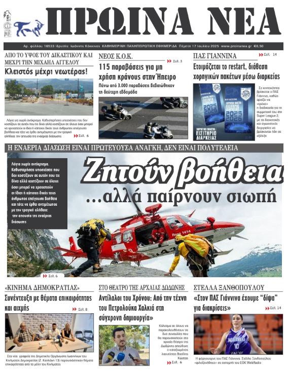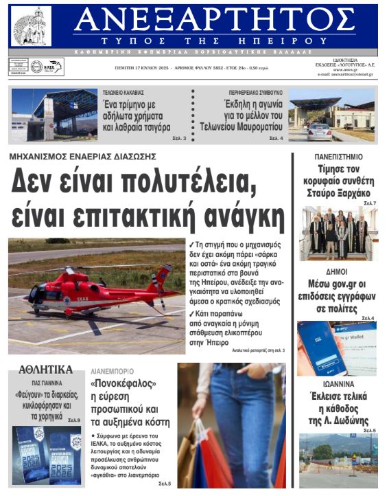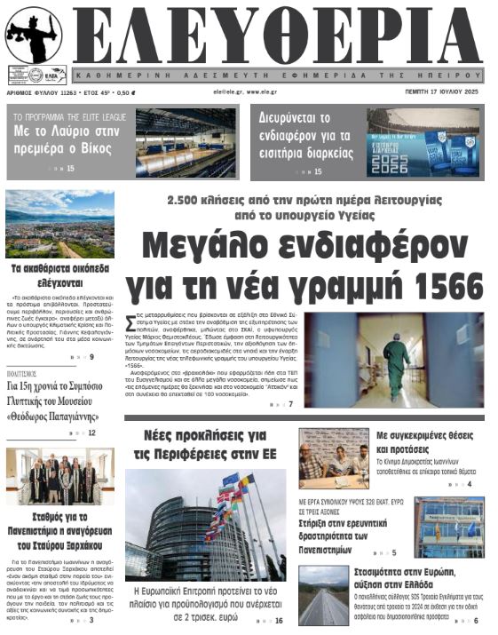ΑρχικήΕΙΔΗΣΕΙΣΗΠΕΙΡΟΣ ΗΠΕΙΡΟΣ Τα πρωτοσέλιδα των γιαννιώτικων εφημερίδων 17.07.2025 0 FacebookTwitterWhatsAppEmailΤυπώνωViber Διαβάστε στα πρωτοσέλιδα των γιαννιώτικων εφημερίδων 17 Ιουλίου 2025 TagsΓΙΑΝΝΙΩΤΙΚΕΣ ΕΦΗΜΕΡΙΔΕΣΠΡΩΤΟΣΕΛΙΔΑ FacebookTwitterWhatsAppEmailΤυπώνωViber Προηγούμενο άρθροΝέα έκρηξη ηφαιστείου στην Ισλανδία: Εκκενώθηκαν περιοχέςΕπόμενο άρθροΆγριος καβγάς ανάμεσα σε Θ. Μπέγκα και Φιλ. Φίλιο ΣΧΕΤΙΚΑ ΑΡΘΡΑ Τα πρωτοσέλιδα των γιαννιώτικων εφημερίδων TOP STORIES 22.11.2025 Τα πρωτοσέλιδα των γιαννιώτικων εφημερίδων ΗΠΕΙΡΟΣ 21.11.2025 Τα πρωτοσέλιδα των γιαννιώτικων εφημερίδων TOP STORIES 20.11.2025 Τα πρωτοσέλιδα των γιαννιώτικων εφημερίδων ΗΠΕΙΡΟΣ 19.11.2025 Τα πρωτοσέλιδα των γιαννιώτικων εφημερίδων ΗΠΕΙΡΟΣ 18.11.2025 Τα πρωτοσέλιδα των γιαννιώτικων εφημερίδων ΗΠΕΙΡΟΣ 15.11.2025 ΣΤΗΝ ΙΔΙΑ ΚΑΤΗΓΟΡΙΑ Τροχαίο με δύο τραυματίες στην Καστρίτσα από εκτροπή ΙΧ ΗΠΕΙΡΟΣ 23.11.2025 Κλειστός ο δρόμος Παλαιοχωρίου–Συρράκου λόγω καθίζησης ΗΠΕΙΡΟΣ 23.11.2025 Τραγωδία στους Κιρκιζάτες με έναν νεκρό και μία γυναίκα σε νοσηλεία ΗΠΕΙΡΟΣ 23.11.2025 Βροχές, χιόνια και χαμηλές θερμοκρασίες στην Ήπειρο ΗΠΕΙΡΟΣ 23.11.2025 Ενθρονίστηκε στο Δελβινάκι ο νέος Μητροπολίτης Αλέξιος ΗΠΕΙΡΟΣ 23.11.2025 Καθιζήσεις, πλημμύρες και εκτεταμένες κατολισθήσεις στα Τζουμέρκα ΗΠΕΙΡΟΣ 23.11.2025 ΜΗ ΧΑΣΕΤΕ Βροχές, χιόνια και χαμηλές θερμοκρασίες στην Ήπειρο Ενθρονίστηκε στο Δελβινάκι ο νέος Μητροπολίτης Αλέξιος Καθιζήσεις, πλημμύρες και εκτεταμένες κατολισθήσεις στα Τζουμέρκα Ικανοποίηση για τη μείωση της ανεργίας Τα πρωτοσέλιδα των γιαννιώτικων εφημερίδων ΔΗΜΟΦΙΛΗ Τραγωδία στους Κιρκιζάτες με έναν νεκρό και μία γυναίκα σε νοσηλεία Τροχαίο με δύο τραυματίες στην Καστρίτσα από εκτροπή ΙΧ Βροχές, χιόνια και χαμηλές θερμοκρασίες στην Ήπειρο Καθιζήσεις, πλημμύρες και εκτεταμένες κατολισθήσεις στα Τζουμέρκα 81.651 αιτήσεις στο North Evia Pass 2025