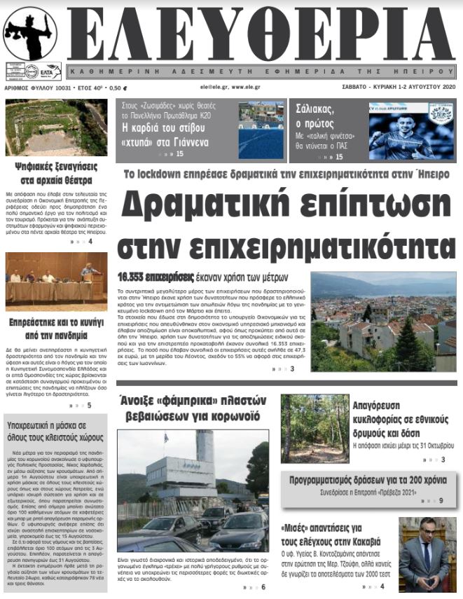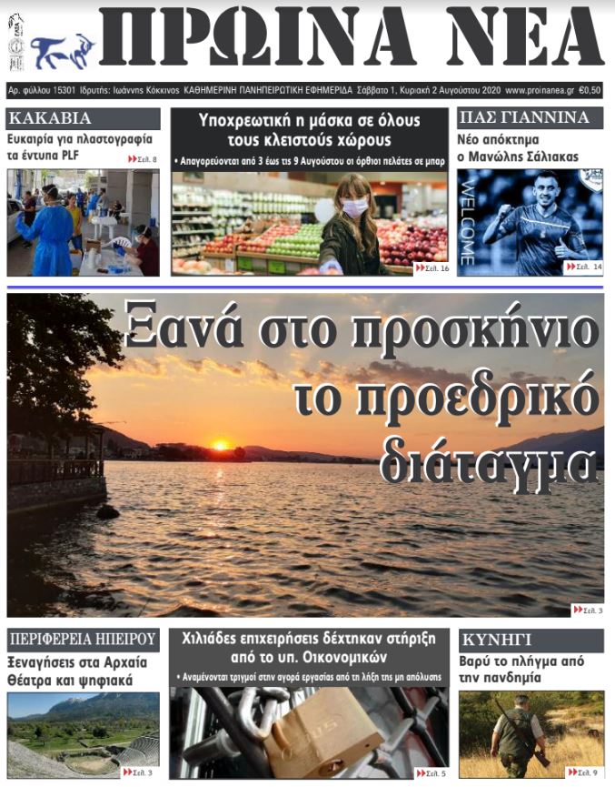 ΑρχικήΕΙΔΗΣΕΙΣΗΠΕΙΡΟΣ ΗΠΕΙΡΟΣ Τα πρωτοσέλιδα των γιαννιώτικων εφημερίδων 02.08.2020 191 FacebookTwitterWhatsAppEmailΤυπώνωViber Διαβάστε στα πρωτοσέλιδα των γιαννιώτικων εφημερίδων του σαββατοκύριακου 1-2 Αυγούστου. TagsΓΙΑΝΝΙΩΤΙΚΕΣ ΕΦΗΜΕΡΙΔΕΣΠΡΩΤΟΣΕΛΙΔΑ FacebookTwitterWhatsAppEmailΤυπώνωViber Προηγούμενο άρθροΡαγδαία αύξηση των κρουσμάτων – 110 σε 24 ώρεςΕπόμενο άρθροΘετικό το κρούσμα κορωνοιού στον ΠΑΟΚ – Αρνητικοί οι παίκτες μετά από εξετάσεις ΣΧΕΤΙΚΑ ΑΡΘΡΑ Τα πρωτοσέλιδα των γιαννιώτικων εφημερίδων TOP STORIES 11.11.2025 Τα πρωτοσέλιδα των γιαννιώτικων εφημερίδων TOP STORIES 08.11.2025 Τα πρωτοσέλιδα των γιαννιώτικων εφημερίδων ΗΠΕΙΡΟΣ 07.11.2025 Τα πρωτοσέλιδα των γιαννιώτικων εφημερίδων ΗΠΕΙΡΟΣ 06.11.2025 Τα πρωτοσέλιδα των γιαννιώτικων εφημερίδων ΗΠΕΙΡΟΣ 05.11.2025 Τα πρωτοσέλιδα των γιαννιώτικων εφημερίδων ΗΠΕΙΡΟΣ 04.11.2025 ΣΤΗΝ ΙΔΙΑ ΚΑΤΗΓΟΡΙΑ Ενημερωτική δράση για τον σακχαρώδη διαβήτη στα Ιωάννινα ΗΠΕΙΡΟΣ 11.11.2025 Συνελήφθη αλλοδαπός διωκόμενος στην Κακαβιά ΗΠΕΙΡΟΣ 11.11.2025 Κατασχέθηκαν 45 αρνιά στην Πρέβεζα – Δύο συλλήψεις ΗΠΕΙΡΟΣ 11.11.2025 43χρονος βρέθηκε νεκρός εντός Ι.Χ. στο Τέροβο ΗΠΕΙΡΟΣ 11.11.2025 Επί τάπητος υποδομές, περιβάλλον και ΤΠΣ ΗΠΕΙΡΟΣ 11.11.2025 Σε αυξημένη ετοιμότητα η Ήπειρος για τη γρίπη των πτηνών ΗΠΕΙΡΟΣ 11.11.2025 ΜΗ ΧΑΣΕΤΕ 43χρονος βρέθηκε νεκρός εντός Ι.Χ. στο Τέροβο Επίδομα θέρμανσης: Νέες οδηγίες της ΑΑΔΕ Σε αυξημένη ετοιμότητα η Ήπειρος για τη γρίπη των πτηνών Δωρεά ζωής από ασθενή στο ΠΓΝΙ Νέες αντιδράσεις για τις παρεμβάσεις στο Γράμμο ΔΗΜΟΦΙΛΗ Τα του Καίσαρος… Επί τάπητος υποδομές, περιβάλλον και ΤΠΣ Υπουργείο Ανάπτυξης: Τρεις νέες στρατηγικές επενδύσεις 206 εκατ. ευρώ ενέκρινε η Διυπουργική Επιτροπή Εορτασμός Ημέρας Ενόπλων Δυνάμεων στο Μολυβδοσκέπαστο Αριθμός ρεκόρ Ουκρανών έλαβαν προσωρινή προστασία στην ΕΕ από το 2023