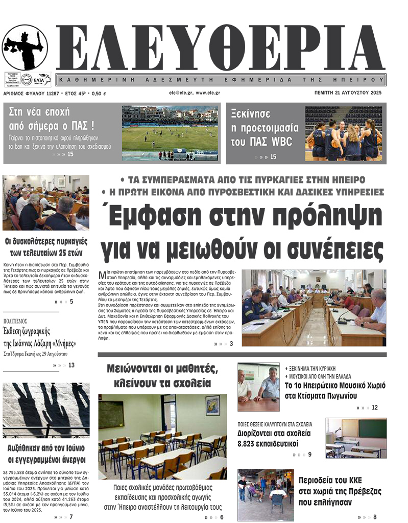 Διαβάστε στα πρωτοσέλιδα των γιαννιώτικων εφημερίδων την Πέμπτη 21 Αυγούστου 2025