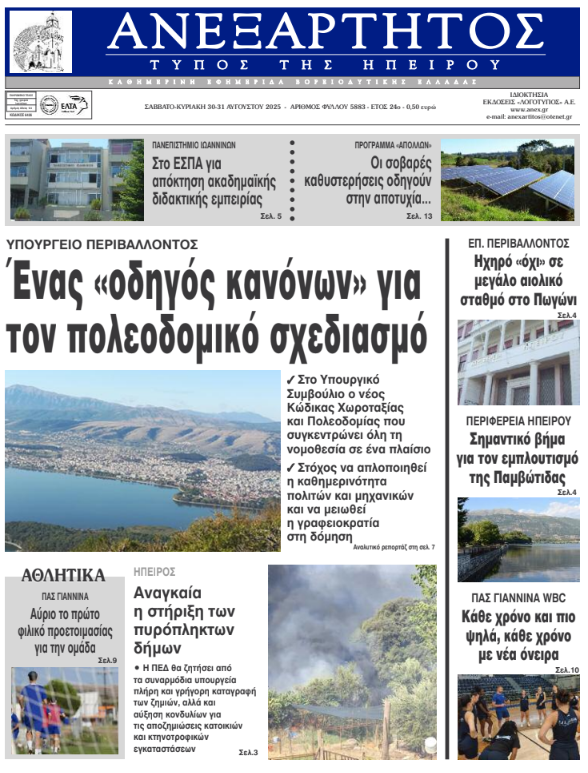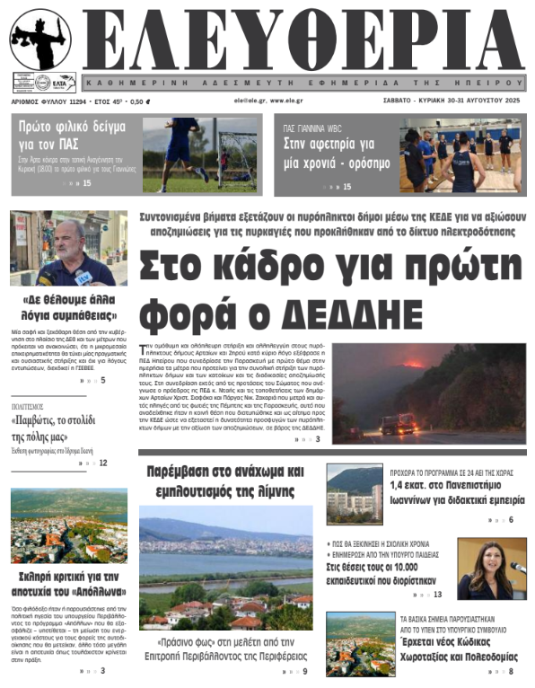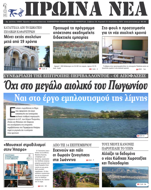 ΑρχικήTOP STORIES TOP STORIESΗΠΕΙΡΟΣ Τα πρωτοσέλιδα των γιαννιώτικων εφημερίδων 30.08.2025 0 FacebookTwitterWhatsAppEmailΤυπώνωViber Διαβάστε στα πρωτοσέλιδα των γιαννιώτικων εφημερίδων 30-31 Αυγούστου 2025 TagsΓΙΑΝΝΙΩΤΙΚΕΣ ΕΦΗΜΕΡΙΔΕΣΠΡΩΤΟΣΕΛΙΔΑ FacebookTwitterWhatsAppEmailΤυπώνωViber Προηγούμενο άρθροΣυγκέντρωση σχολικών ειδών από τον Δήμο ΑρταίωνΕπόμενο άρθροΤα του Καίσαρος… ΣΧΕΤΙΚΑ ΑΡΘΡΑ Τα πρωτοσέλιδα των γιαννιώτικων εφημερίδων TOP STORIES 09.12.2025 Τα πρωτοσέλιδα των γιαννιώτικων εφημερίδων ΗΠΕΙΡΟΣ 06.12.2025 Τα πρωτοσέλιδα των γιαννιώτικων εφημερίδων ΗΠΕΙΡΟΣ 05.12.2025 Τα πρωτοσέλιδα των γιαννιώτικων εφημερίδων ΗΠΕΙΡΟΣ 04.12.2025 Τα πρωτοσέλιδα των γιαννιώτικων εφημερίδων ΗΠΕΙΡΟΣ 03.12.2025 Τα πρωτοσέλιδα των γιαννιώτικων εφημερίδων ΗΠΕΙΡΟΣ 02.12.2025 ΣΤΗΝ ΙΔΙΑ ΚΑΤΗΓΟΡΙΑ ΕΑΥΝΙ: Τα κοινωνικά προβλήματα δεν λύνονται με αστυνομεύση ΗΠΕΙΡΟΣ 09.12.2025 Τέλη κυκλοφορίας: Διευκρινίσεις από την ΑΑΔΕ για τους ιδιοκτήτες οχημάτων TOP STORIES 09.12.2025 Κλιμακώνονται οι αγροτικές κινητοποιήσεις – Μπλόκα και στην Ήπειρο ΗΠΕΙΡΟΣ 09.12.2025 Νέος πρόεδρος του Δικηγορικού Συλλόγου Ιωαννίνων ο Σπ. Μποροδήμος ΗΠΕΙΡΟΣ 09.12.2025 Καταιγιστικές εξελίξεις στον ΑΣΔΑ για τα θαμμένα ζωικά απόβλητα ΗΠΕΙΡΟΣ 09.12.2025 Τα πρωτοσέλιδα των γιαννιώτικων εφημερίδων TOP STORIES 09.12.2025 ΜΗ ΧΑΣΕΤΕ Τέλη κυκλοφορίας: Διευκρινίσεις από την ΑΑΔΕ για τους ιδιοκτήτες οχημάτων Κλιμακώνονται οι αγροτικές κινητοποιήσεις – Μπλόκα και στην Ήπειρο Νέος πρόεδρος του Δικηγορικού Συλλόγου Ιωαννίνων ο Σπ. Μποροδήμος Καταιγιστικές εξελίξεις στον ΑΣΔΑ για τα θαμμένα ζωικά απόβλητα Τα πρωτοσέλιδα των γιαννιώτικων εφημερίδων ΔΗΜΟΦΙΛΗ Το 2025 αναμένεται να είναι το δεύτερο θερμότερο έτος που καταγράφτηκε ποτέ Τέλη κυκλοφορίας: Διευκρινίσεις από την ΑΑΔΕ για τους ιδιοκτήτες οχημάτων ΕΑΥΝΙ: Τα κοινωνικά προβλήματα δεν λύνονται με αστυνομεύση OLD FANS: Ο ΠΑΣ είναι ιδέα και οι ιδέες δεν πεθαίνουν Κάλεσμα Σιόντη για παρουσία Δήμου και Περιφέρειας στη συνάντηση για τον ΠΑΣ