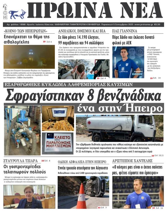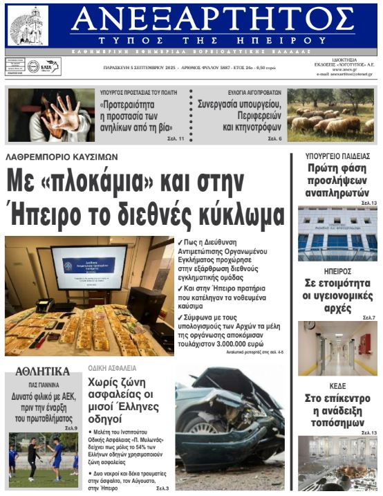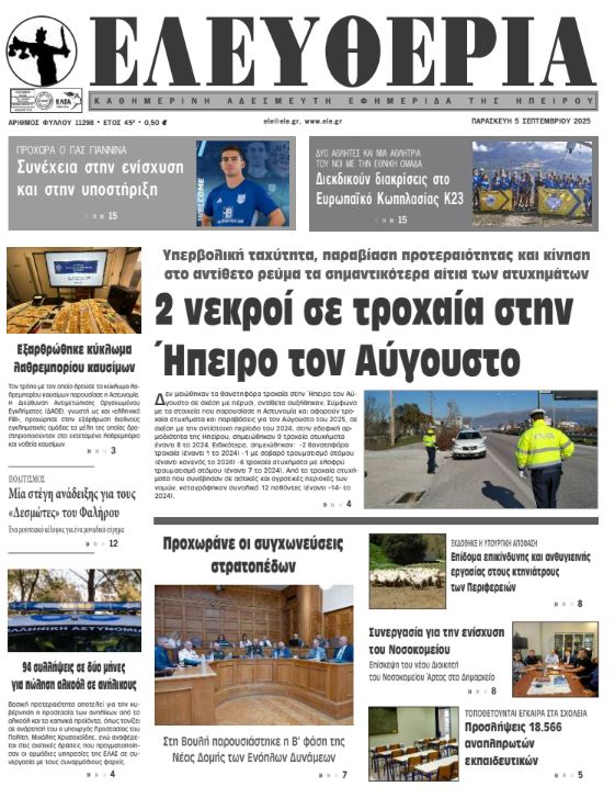 Διαβάστε στα πρωτοσέλιδα των γιαννιώτικων εφημερίδων Παρασκευή 5 Σεπτεμβρίου 2025