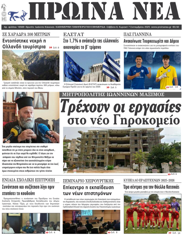 Διαβάστε στα πρωτοσέλιδα των γιαννιώτικων εφημερίδων 6-7 Σεπτεμβρίου 2025