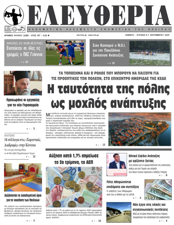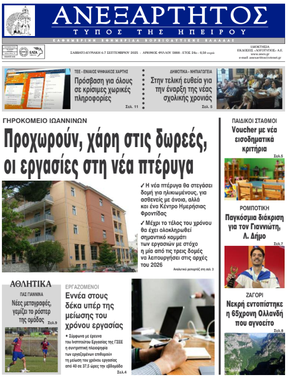 Διαβάστε στα πρωτοσέλιδα των γιαννιώτικων εφημερίδων 6-7 Σεπτεμβρίου 2025