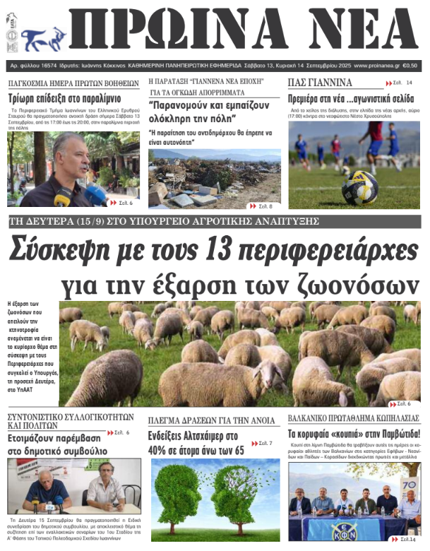 Διαβάστε στα πρωτοσέλιδα των γιαννιώτικων εφημερίδων 13-14 Σεπτεμβρίου 2025