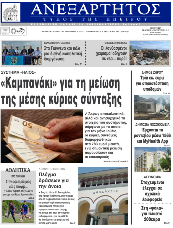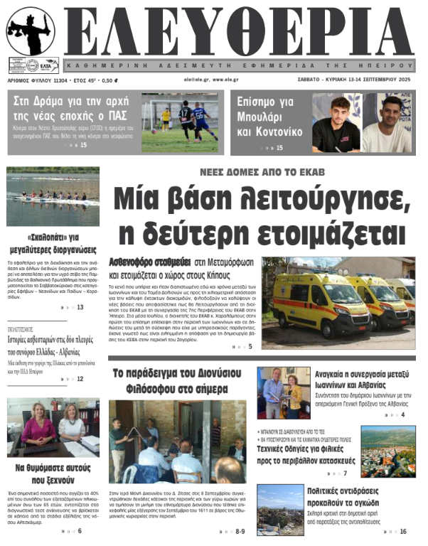 Διαβάστε στα πρωτοσέλιδα των γιαννιώτικων εφημερίδων 13-14 Σεπτεμβρίου 2025