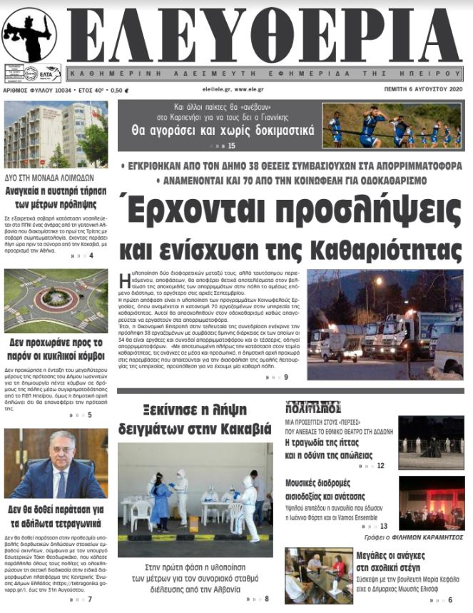 ΑρχικήΕΙΔΗΣΕΙΣΗΠΕΙΡΟΣ ΗΠΕΙΡΟΣ Τα πρωτοσέλιδα των γιαννιώτικων εφημερίδων 06.08.2020 221 FacebookTwitterWhatsAppEmailΤυπώνωViber Διαβάστε στα πρωτοσέλιδα των γιαννιώτικων εφημερίδων του σήμερα Πέμπτη 6 Αυγούστου TagsΓΙΑΝΝΙΩΤΙΚΕΣ ΕΦΗΜΕΡΙΔΕΣΠΡΩΤΟΣΕΛΙΔΑ FacebookTwitterWhatsAppEmailΤυπώνωViber Προηγούμενο άρθροΚινητοποίηση ενάντια στην παραχώρηση του Λιμένα ΗγουμενίτσαςΕπόμενο άρθροΑπαγόρευση διέλευσης 11 μ.μ. -7 π.μ. στις χερσαίες πύλες εισόδου ΣΧΕΤΙΚΑ ΑΡΘΡΑ Τα πρωτοσέλιδα των γιαννιώτικων εφημερίδων TOP STORIES 12.11.2025 Τα πρωτοσέλιδα των γιαννιώτικων εφημερίδων ΗΠΕΙΡΟΣ 11.11.2025 Τα πρωτοσέλιδα των γιαννιώτικων εφημερίδων TOP STORIES 08.11.2025 Τα πρωτοσέλιδα των γιαννιώτικων εφημερίδων ΗΠΕΙΡΟΣ 07.11.2025 Τα πρωτοσέλιδα των γιαννιώτικων εφημερίδων ΗΠΕΙΡΟΣ 06.11.2025 Τα πρωτοσέλιδα των γιαννιώτικων εφημερίδων ΗΠΕΙΡΟΣ 05.11.2025 ΣΤΗΝ ΙΔΙΑ ΚΑΤΗΓΟΡΙΑ Στρατηγικό εργαλείο για τη βιώσιμη ανάπτυξη το ΤΠΣ Βορείων Τζουμέρκων ΗΠΕΙΡΟΣ 12.11.2025 Τα πρωτοσέλιδα των γιαννιώτικων εφημερίδων TOP STORIES 12.11.2025 Ενημερωτική δράση για τον σακχαρώδη διαβήτη στα Ιωάννινα ΗΠΕΙΡΟΣ 11.11.2025 Συνελήφθη αλλοδαπός διωκόμενος στην Κακαβιά ΗΠΕΙΡΟΣ 11.11.2025 Κατασχέθηκαν 45 αρνιά στην Πρέβεζα – Δύο συλλήψεις ΗΠΕΙΡΟΣ 11.11.2025 43χρονος βρέθηκε νεκρός εντός Ι.Χ. στο Τέροβο ΗΠΕΙΡΟΣ 11.11.2025 ΜΗ ΧΑΣΕΤΕ Εντυπωσιακή αύξηση στις δωρεές οργάνων και μεταμοσχεύσεις στην Ελλάδα Συμβαδίζει με την κεντρική «γραμμή» ο ΣΥΡΙΖΑ Ιωαννίνων Τα πρωτοσέλιδα των γιαννιώτικων εφημερίδων 43χρονος βρέθηκε νεκρός εντός Ι.Χ. στο Τέροβο Επίδομα θέρμανσης: Νέες οδηγίες της ΑΑΔΕ ΔΗΜΟΦΙΛΗ Συνάντηση Μητσοτάκη – Χριστοδουλίδη στο πλαίσιο της 3ης Διακυβερνητικής Συνόδου Το πετρέλαιο φτάνει στο όριό του – Άνοδος των ΑΠΕ Συμβαδίζει με την κεντρική «γραμμή» ο ΣΥΡΙΖΑ Ιωαννίνων Τα πρωτοσέλιδα των γιαννιώτικων εφημερίδων Στρατηγικό εργαλείο για τη βιώσιμη ανάπτυξη το ΤΠΣ Βορείων Τζουμέρκων