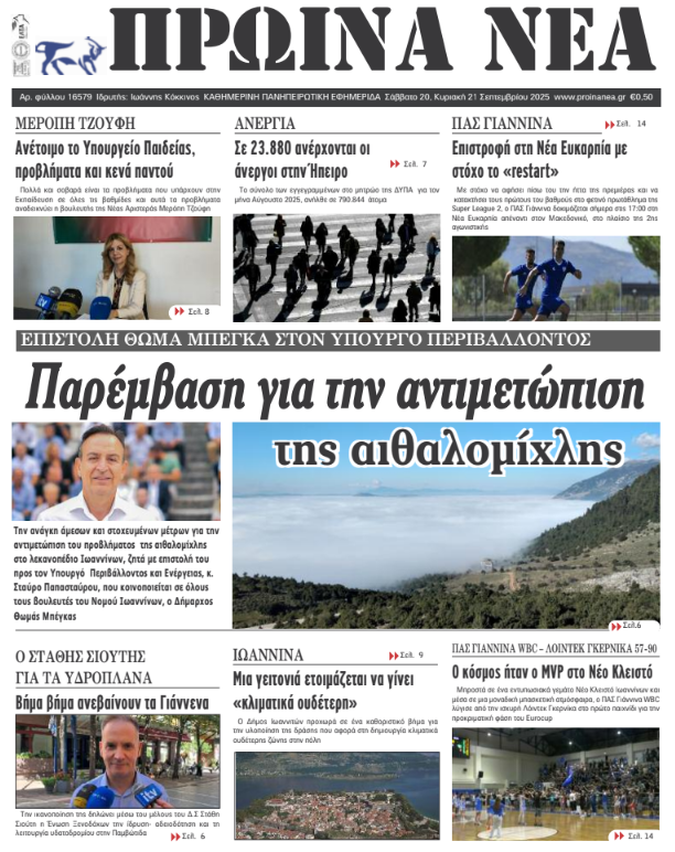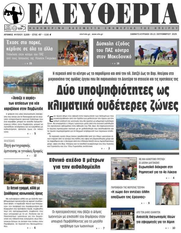 Διαβάστε στα πρωτοσέλιδα των γιαννιώτικων εφημερίδων 20-21 Σεπτεμβρίου 2025