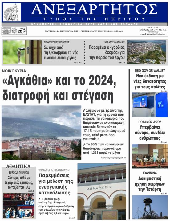 ΑρχικήΕΙΔΗΣΕΙΣΗΠΕΙΡΟΣ ΗΠΕΙΡΟΣ Τα πρωτοσέλιδα των γιαννιώτικων εφημερίδων 26.09.2025 0 FacebookTwitterWhatsAppEmailΤυπώνωViber Διαβάστε στα πρωτοσέλιδα των γιαννιώτικων εφημερίδων Παρασκευή 26 Σεπτεμβρίου 2025 TagsΓΙΑΝΝΙΩΤΙΚΕΣ ΕΦΗΜΕΡΙΔΕΣΠΡΩΤΟΣΕΛΙΔΑ FacebookTwitterWhatsAppEmailΤυπώνωViber Προηγούμενο άρθροΒραχυχρόνια μίσθωση: Τα «χαρακτηριστικά» που πρέπει να έχουν τα ακίνητα από 1η ΟκτωβρίουΕπόμενο άρθροΠΑΣΟΚ: Ο κ. Μητσοτάκης οφείλει άμεσα να αποπέμψει τον Γιώργο Μυλωνάκη ΣΧΕΤΙΚΑ ΑΡΘΡΑ Τα πρωτοσέλιδα των γιαννιώτικων εφημερίδων TOP STORIES 29.11.2025 Τα πρωτοσέλιδα των γιαννιώτικων εφημερίδων ΗΠΕΙΡΟΣ 28.11.2025 Τα πρωτοσέλιδα των γιαννιώτικων εφημερίδων ΗΠΕΙΡΟΣ 27.11.2025 Τα πρωτοσέλιδα των γιαννιώτικων εφημερίδων ΗΠΕΙΡΟΣ 26.11.2025 Τα πρωτοσέλιδα των γιαννιώτικων εφημερίδων ΗΠΕΙΡΟΣ 25.11.2025 Τα πρωτοσέλιδα των γιαννιώτικων εφημερίδων ΗΠΕΙΡΟΣ 22.11.2025 ΣΤΗΝ ΙΔΙΑ ΚΑΤΗΓΟΡΙΑ Διαχειρίσιμη η κατάσταση στα Τζουμέρκα – Μία κατοικία κατεδαφιστέα ΗΠΕΙΡΟΣ 30.11.2025 Τίμησαν τη μνήμη και τη θυσία του Λορέντζου Μαβίλη ΗΠΕΙΡΟΣ 30.11.2025 Στο Σιναΐτικο Μετόχι Ιωαννίνων ο Αρχιεπίσκοπος Σινά κ.κ. Συμεών ΗΠΕΙΡΟΣ 30.11.2025 Υπόμνημα με τα προβλήματα και τις προτάσεις τους ΗΠΕΙΡΟΣ 30.11.2025 Προληπτικές ιατρικές και οδοντιατρικές εξετάσεις για παιδιά ΗΠΕΙΡΟΣ 30.11.2025 Βγαίνουν και στους δρόμους της Ηπείρου τα τρακτέρ ΗΠΕΙΡΟΣ 29.11.2025 ΜΗ ΧΑΣΕΤΕ Διαχειρίσιμη η κατάσταση στα Τζουμέρκα – Μία κατοικία κατεδαφιστέα Τίμησαν τη μνήμη και τη θυσία του Λορέντζου Μαβίλη Στο Σιναΐτικο Μετόχι Ιωαννίνων ο Αρχιεπίσκοπος Σινά κ.κ. Συμεών Σχέδιο για Παιδοψυχιατρική Κλινική στα Ιωάννινα Μαζική διαμαρτυρία για την κεραία δίπλα στο σχολείο ΔΗΜΟΦΙΛΗ Στο Σιναΐτικο Μετόχι Ιωαννίνων ο Αρχιεπίσκοπος Σινά κ.κ. Συμεών Διαχειρίσιμη η κατάσταση στα Τζουμέρκα – Μία κατοικία κατεδαφιστέα Προληπτικές ιατρικές και οδοντιατρικές εξετάσεις για παιδιά Τίμησαν τη μνήμη και τη θυσία του Λορέντζου Μαβίλη Μαθητικός διαγωνισμός φωτογραφίας και ζωγραφικής από το Μουσικό Σχολείο