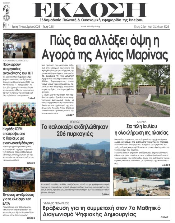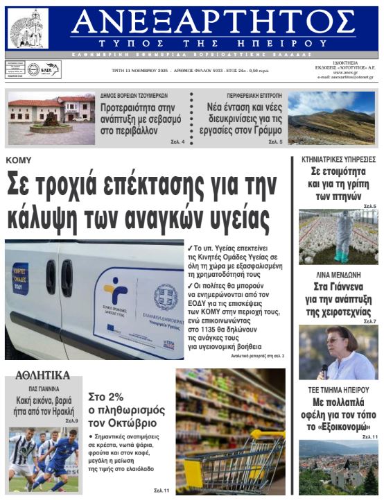 ΑρχικήTOP STORIES TOP STORIESΗΠΕΙΡΟΣ Τα πρωτοσέλιδα των γιαννιώτικων εφημερίδων 11.11.2025 0 FacebookTwitterWhatsAppEmailΤυπώνωViber Διαβάστε στα πρωτοσέλιδα των γιαννιώτικων εφημερίδων Τρίτη 11 Νοεμβρίου 2025 TagsΓΙΑΝΝΙΩΤΙΚΕΣ ΕΦΗΜΕΡΙΔΕΣΠΡΩΤΟΣΕΛΙΔΑ FacebookTwitterWhatsAppEmailΤυπώνωViber Προηγούμενο άρθροBlack Friday: Πότε «πέφτει» φέτος η μεγάλη ημέρα των εκπτώσεων;Επόμενο άρθροΓυμνή Αλήθεια ΣΧΕΤΙΚΑ ΑΡΘΡΑ Τα πρωτοσέλιδα των γιαννιώτικων εφημερίδων TOP STORIES 08.11.2025 Τα πρωτοσέλιδα των γιαννιώτικων εφημερίδων ΗΠΕΙΡΟΣ 07.11.2025 Τα πρωτοσέλιδα των γιαννιώτικων εφημερίδων ΗΠΕΙΡΟΣ 06.11.2025 Τα πρωτοσέλιδα των γιαννιώτικων εφημερίδων ΗΠΕΙΡΟΣ 05.11.2025 Τα πρωτοσέλιδα των γιαννιώτικων εφημερίδων ΗΠΕΙΡΟΣ 04.11.2025 Τα πρωτοσέλιδα των γιαννιώτικων εφημερίδων TOP STORIES 01.11.2025 ΣΤΗΝ ΙΔΙΑ ΚΑΤΗΓΟΡΙΑ Ενημερωτική δράση για τον σακχαρώδη διαβήτη στα Ιωάννινα ΗΠΕΙΡΟΣ 11.11.2025 Συνελήφθη αλλοδαπός διωκόμενος στην Κακαβιά ΗΠΕΙΡΟΣ 11.11.2025 Κατασχέθηκαν 45 αρνιά στην Πρέβεζα – Δύο συλλήψεις ΗΠΕΙΡΟΣ 11.11.2025 43χρονος βρέθηκε νεκρός εντός Ι.Χ. στο Τέροβο ΗΠΕΙΡΟΣ 11.11.2025 Επί τάπητος υποδομές, περιβάλλον και ΤΠΣ ΗΠΕΙΡΟΣ 11.11.2025 Επίδομα θέρμανσης: Νέες οδηγίες της ΑΑΔΕ TOP STORIES 11.11.2025 ΜΗ ΧΑΣΕΤΕ 43χρονος βρέθηκε νεκρός εντός Ι.Χ. στο Τέροβο Επίδομα θέρμανσης: Νέες οδηγίες της ΑΑΔΕ Σε αυξημένη ετοιμότητα η Ήπειρος για τη γρίπη των πτηνών Δωρεά ζωής από ασθενή στο ΠΓΝΙ Νέες αντιδράσεις για τις παρεμβάσεις στο Γράμμο ΔΗΜΟΦΙΛΗ Συνελήφθη αλλοδαπός διωκόμενος στην Κακαβιά Νέες αντιδράσεις για τις παρεμβάσεις στο Γράμμο Φάμελλος: Πάνω από όλα είναι τα συμφέροντα της κοινωνίας Υπό έρευνα η Ελβετική Φρουρά στο Βατικανό Ζαχαράκη: Δομική αλλαγή στη διαχείριση των κενών στην εκπαίδευση