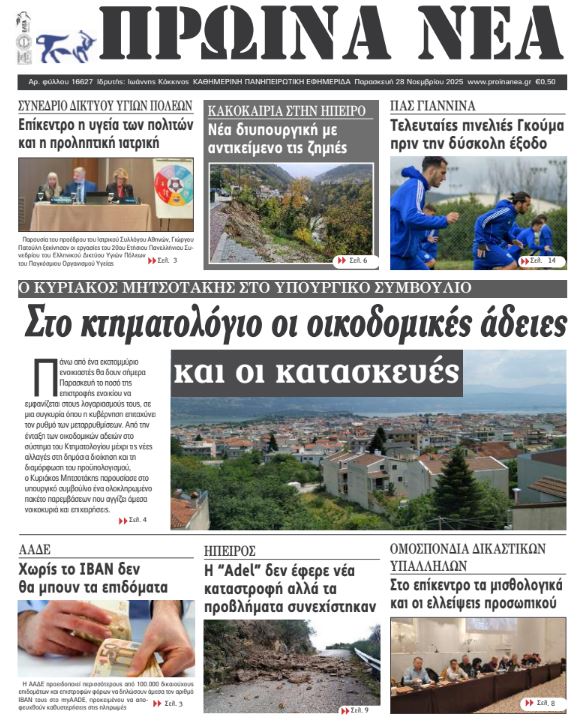 Διαβάστε στα πρωτοσέλιδα των γιαννιώτικων εφημερίδων Παρασκευή 28-11-2025
