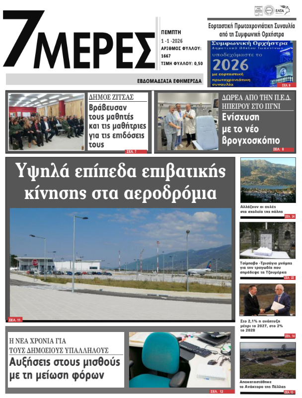 ΑρχικήΕΙΔΗΣΕΙΣΗΠΕΙΡΟΣ ΗΠΕΙΡΟΣ Τα πρωτοσέλιδα των γιαννιώτικων εφημερίδων 01.01.2026 0 FacebookTwitterWhatsAppEmailΤυπώνωViber Διαβάστε στα πρωτοσέλιδα των γιαννιώτικων εφημερίδων Πέμπτη 1-1-2026 TagsΓΙΑΝΝΙΩΤΙΚΕΣ ΕΦΗΜΕΡΙΔΕΣΠΡΩΤΟΣΕΛΙΔΑ FacebookTwitterWhatsAppEmailΤυπώνωViber Προηγούμενο άρθροΕΓΝΑΤΙΑ ΟΔΟΣ -Σε ισχύ οι εξαιρέσεις για τους μόνιμους κατοίκουςΕπόμενο άρθρο«Έφυγε» από τη ζωή ο Άλκης Χήτος ΣΧΕΤΙΚΑ ΑΡΘΡΑ Τα πρωτοσέλιδα των γιαννιώτικων εφημερίδων TOP STORIES 11.01.2026 Τα πρωτοσέλιδα των γιαννιώτικων εφημερίδων ΗΠΕΙΡΟΣ 09.01.2026 Τα πρωτοσέλιδα των γιαννιώτικων εφημερίδων ΗΠΕΙΡΟΣ 08.01.2026 Τα πρωτοσέλιδα των γιαννιώτικων εφημερίδων ΗΠΕΙΡΟΣ 06.01.2026 Τα πρωτοσέλιδα των γιαννιώτικων εφημερίδων ΗΠΕΙΡΟΣ 31.12.2025 Τα πρωτοσέλιδα των γιαννιώτικων εφημερίδων ΗΠΕΙΡΟΣ 30.12.2025 ΣΤΗΝ ΙΔΙΑ ΚΑΤΗΓΟΡΙΑ Σύλληψη αλλοδαπού καταζητούμενου στην Κακαβιά ΗΠΕΙΡΟΣ 11.01.2026 Τα πρωτοσέλιδα των γιαννιώτικων εφημερίδων TOP STORIES 11.01.2026 «Απαγορευτικό» στην Εγνατία, πρόστιμα στην παλιά εθνική! ΗΠΕΙΡΟΣ 11.01.2026 ΣΠ. ΚΥΡΙΑΚΗΣ -Συνάντηση συνεργασίας για την αναπτυξιακή πορεία της Πρέβεζας ΗΠΕΙΡΟΣ 11.01.2026 Ο Καχριμάνης και το αγαπημένο (του) διοικητικό… σπορ ΗΠΕΙΡΟΣ 09.01.2026 Κεφάλα: Παραμένει σε λειτουργία το φυλάκιο στις Δρυμάδες Πωγωνίου ΗΠΕΙΡΟΣ 09.01.2026 ΜΗ ΧΑΣΕΤΕ Τα πρωτοσέλιδα των γιαννιώτικων εφημερίδων «Απαγορευτικό» στην Εγνατία, πρόστιμα στην παλιά εθνική! Κεφάλα: Παραμένει σε λειτουργία το φυλάκιο στις Δρυμάδες Πωγωνίου Αυτονόητοι προβληματισμοί, απαιτούν απαντήσεις e-ΕΦΚΑ: Οι ημερομηνίες καταβολής των συντάξεων Φεβρουαρίου ΔΗΜΟΦΙΛΗ Μ. ΘΕΜΙΣΤΟΚΛΕΟΥΣ -Στόχος η ένταξη των νοσηλευτών στα βαρέα και ανθυγιεινά μέσα στους επόμενους μήνες ΣΠ. ΚΥΡΙΑΚΗΣ -Συνάντηση συνεργασίας για την αναπτυξιακή πορεία της Πρέβεζας Σύλληψη αλλοδαπού καταζητούμενου στην Κακαβιά Τα πρωτοσέλιδα των γιαννιώτικων εφημερίδων Τα του Καίσαρος…