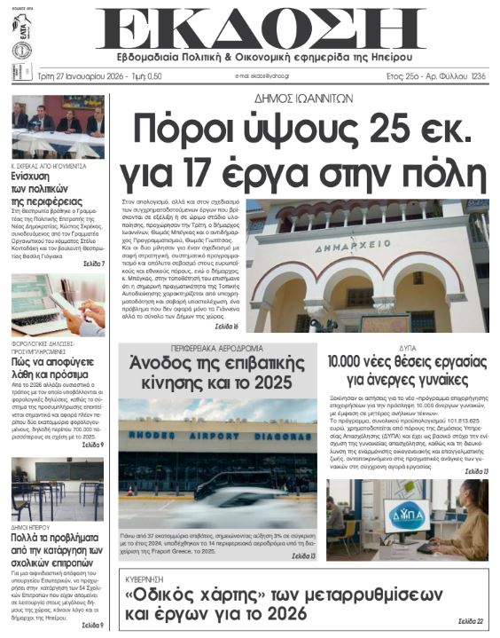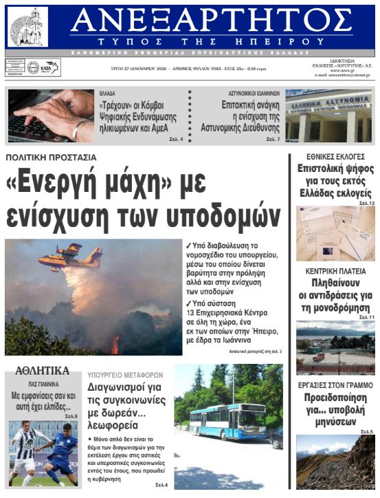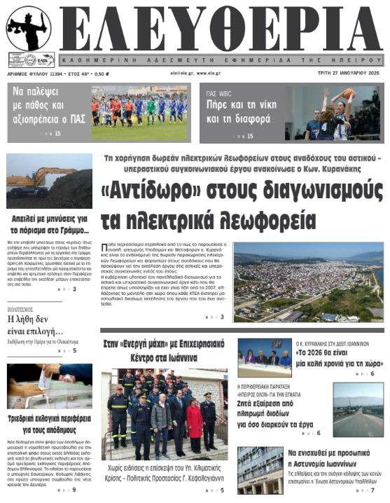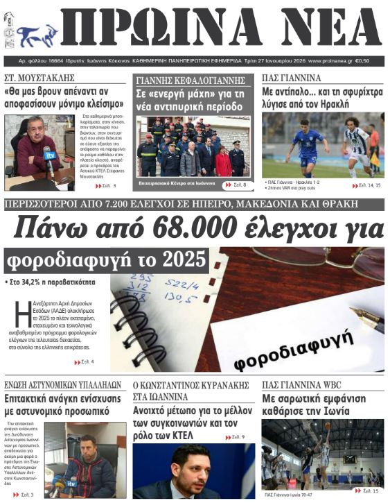 Διαβάστε στα πρωτοσέλιδα των γιαννιώτικων εφημερίδων Τρίτη 27-1-2026