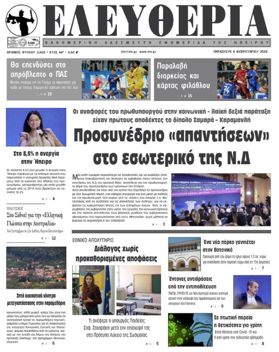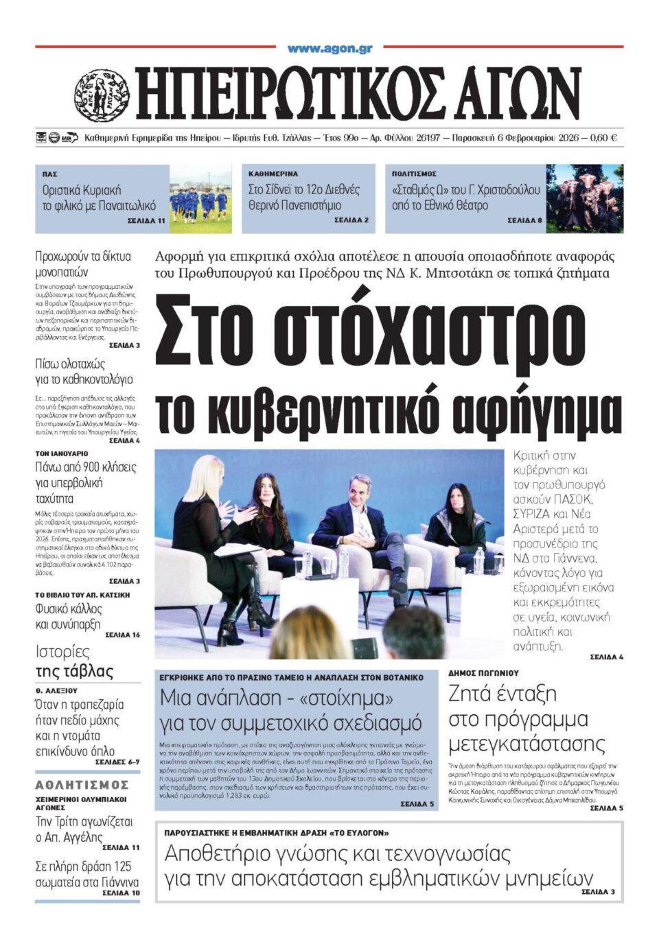 Διαβάστε στα πρωτοσέλιδα των γιαννιώτικων εφημερίδων Παρασκευή 6 Φεβρουαρίου 2026