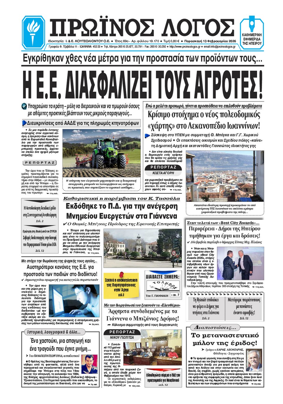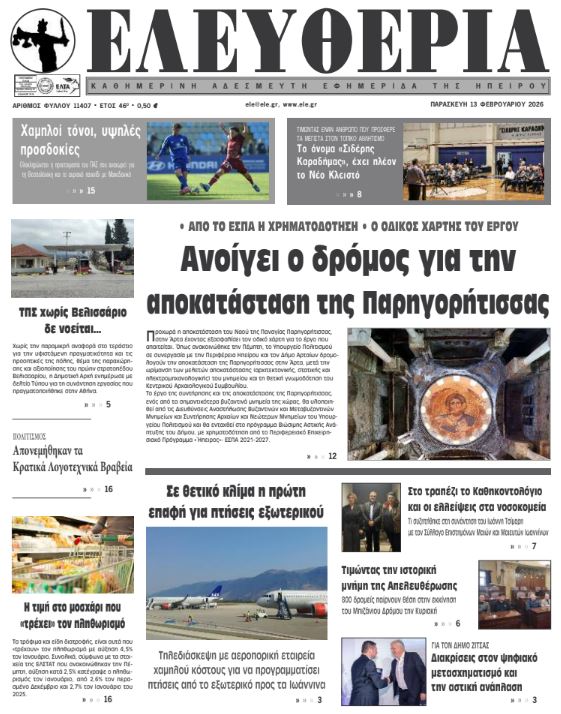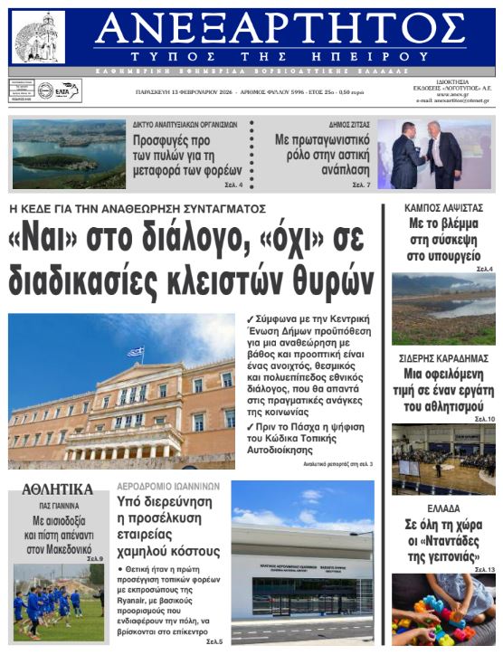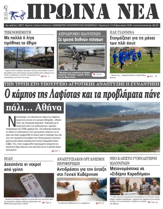 Διαβάστε στα πρωτοσέλιδα των γιαννιώτικων εφημερίδων Παρασκευή 13-2-2026