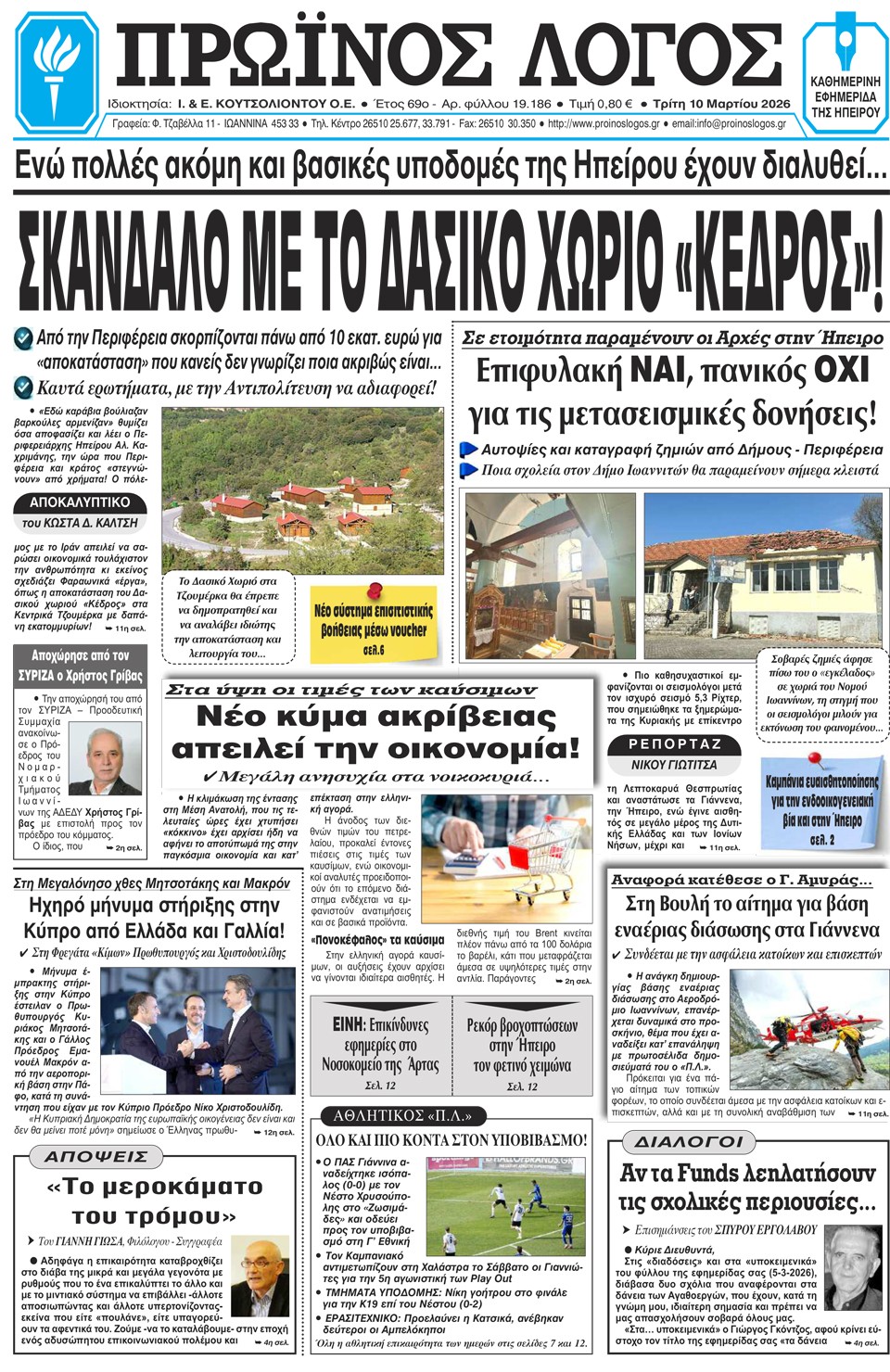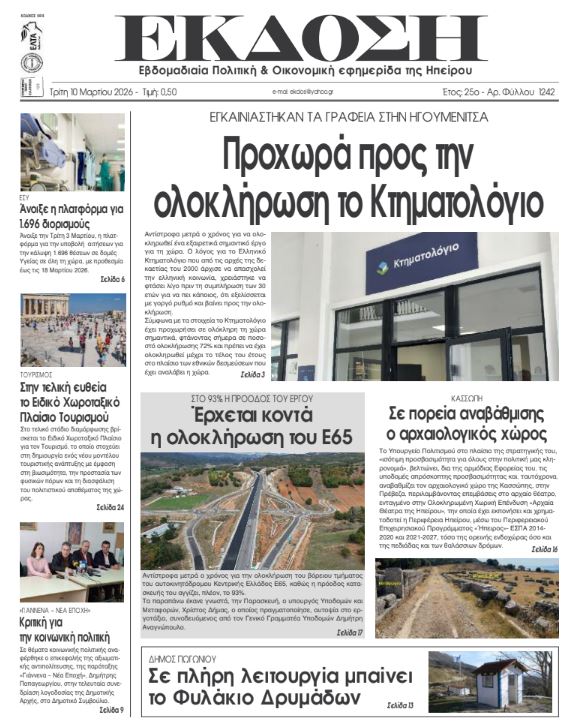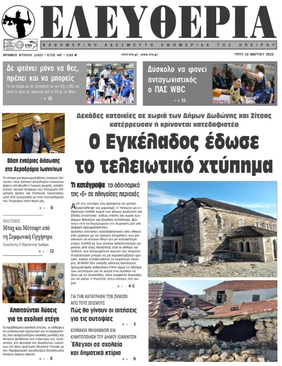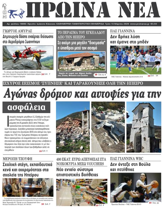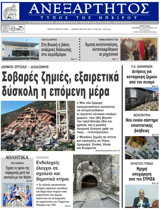 Διαβάστε στα πρωτοσέλιδα των γιαννιώτικων εφημερίδων Τρίτη 10-3-2026