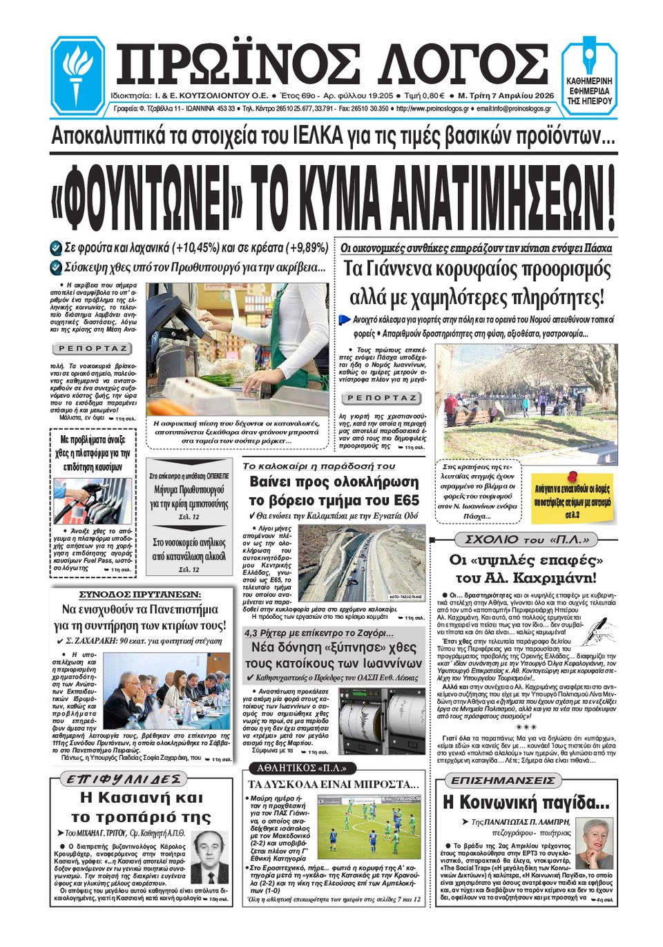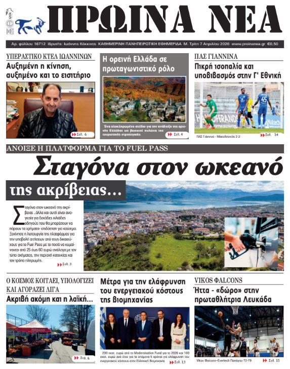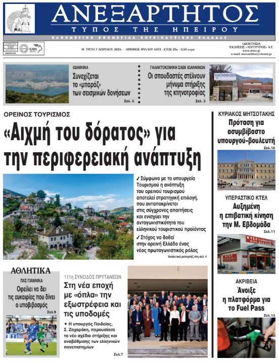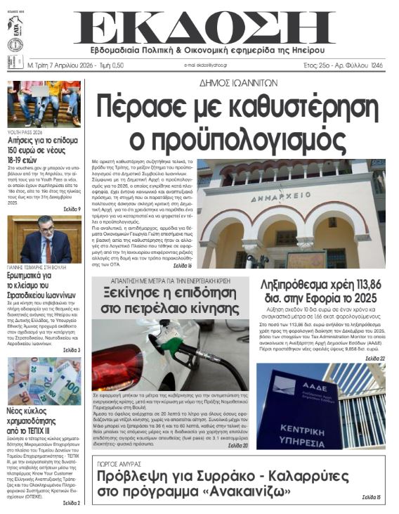 Διαβάστε στα πρωτοσέλιδα των γιαννιώτικων εφημερίδων Μ. Τρίτη 7-4-2026
