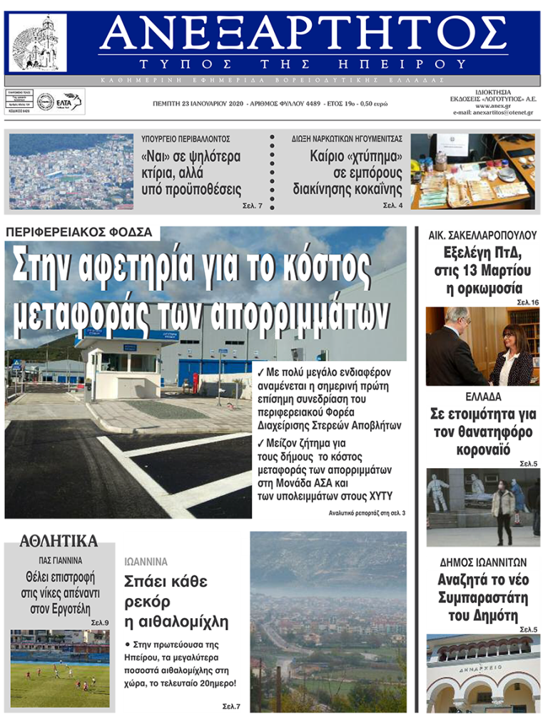 Διαβάστε στα πρωτοσέλιδα των γιαννιώτικων εφημερίδων σήμερα, Πέμπτη 23 Ιανουαρίου.