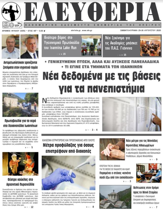 ΑρχικήΕΙΔΗΣΕΙΣΗΠΕΙΡΟΣ ΗΠΕΙΡΟΣ Τα πρωτοσέλιδα των γιαννιώτικων εφημερίδων 29.08.2020 192 FacebookTwitterWhatsAppEmailΤυπώνωViber Διαβάστε στα πρωτοσέλιδα των γιαννιώτικων εφημερίδων το σαββατοκύριακο 29-30 Αυγούστου TagsΓΙΑΝΝΙΩΤΙΚΕΣ ΕΦΗΜΕΡΙΔΕΣΠΡΩΤΟΣΕΛΙΔΑ FacebookTwitterWhatsAppEmailΤυπώνωViber Προηγούμενο άρθροΠαράταση γενικών απαγορεύσεων και έκτακτα μέτρα σε Ζάκυνθο – Λέσβο – ΗμαθίαΕπόμενο άρθροΔιαδικτυακή εκδήλωση ενημέρωσης για τις Σχολές και τα προγράμματα σπουδών του Ευρωπαϊκού Πανεπιστημίου Κύπρου ΣΧΕΤΙΚΑ ΑΡΘΡΑ Τα πρωτοσέλιδα των γιαννιώτικων εφημερίδων ΗΠΕΙΡΟΣ 13.12.2025 Τα πρωτοσέλιδα των γιαννιώτικων εφημερίδων ΗΠΕΙΡΟΣ 12.12.2025 Τα πρωτοσέλιδα των γιαννιώτικων εφημερίδων ΗΠΕΙΡΟΣ 11.12.2025 Τα πρωτοσέλιδα των γιαννιώτικων εφημερίδων ΗΠΕΙΡΟΣ 10.12.2025 Τα πρωτοσέλιδα των γιαννιώτικων εφημερίδων ΗΠΕΙΡΟΣ 09.12.2025 Τα πρωτοσέλιδα των γιαννιώτικων εφημερίδων ΗΠΕΙΡΟΣ 06.12.2025 ΣΤΗΝ ΙΔΙΑ ΚΑΤΗΓΟΡΙΑ Το 8ο Δημοτικό Σχολείο Άρτας αναβαθμίζεται σε Πειραματικό ΗΠΕΙΡΟΣ 15.12.2025 Ο Δήμος Ζίτσας καλωσόρισε τα Χριστούγεννα ΗΠΕΙΡΟΣ 15.12.2025 Σύλληψη αλλοδαπού φυγόποινου στην Πρέβεζα ΗΠΕΙΡΟΣ 15.12.2025 «Μαγικοί σελιδοδείκτες» στους μαθητές της Α’ Δημοτικού από τον δήμο Ιωαννιτών ΗΠΕΙΡΟΣ 15.12.2025 Το «Κοινό των Ηπειρωτών» στηρίζει αγρότες και κτηνοτρόφους ΗΠΕΙΡΟΣ 15.12.2025 Δωρεά ζωής από ασθενή της ΜΕΘ του ΠΓΝΙ ΗΠΕΙΡΟΣ 15.12.2025 ΜΗ ΧΑΣΕΤΕ Τσιάρας: Πρόσκληση σε διάλογο με τους αγρότες εν μέσω κλιμάκωσης των κινητοποιήσεων Τέλη κυκλοφορίας: Λήγει η προθεσμία στις 31 Δεκεμβρίου – Οδηγός ΑΑΔΕ για πληρωμή και συχνές απορίες Ποιοι συμμετέχουν στην 24ωρη πανελλαδική απεργία της Τρίτης Εθνικό πένθος στην Αυστραλία μετά την τρομοκρατική επίθεση στο Μποντάι Πληρωμές από τον e-ΕΦΚΑ και τη ΔΥΠΑ έως τις 19 Δεκεμβρίου ΔΗΜΟΦΙΛΗ Τσιάρας: Πρόσκληση σε διάλογο με τους αγρότες εν μέσω κλιμάκωσης των κινητοποιήσεων ΑΔΕΔΥ: Στήριξη στους αγρότες και κινητοποίηση ενάντια στον προϋπολογισμό Νέα Αριστερά Ιωαννίνων: Κάλεσμα κινητοποίησης ενάντια στον προϋπολογισμό Ηρωική παρέμβαση στο Μπόνταϊ: Ο Αχμέντ αλ Αχμέντ αφόπλισε τον δράστη και έσωσε ζωές Ένοπλη επίθεση στο Σίδνεϊ: Πατέρας και γιος φέρονται να είχαν δεσμούς με το ISIS