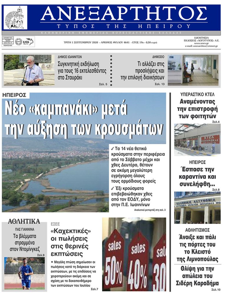 ΑρχικήΕΙΔΗΣΕΙΣΗΠΕΙΡΟΣ ΗΠΕΙΡΟΣ Τα πρωτοσέλιδα των γιαννιώτικων εφημερίδων 01.09.2020 220 FacebookTwitterWhatsAppEmailΤυπώνωViber Διαβάστε στα πρωτοσέλιδα των γιαννιώτικων εφημερίδων σήμερα Τρίτη 1 Σεπτεμβρίου TagsΓΙΑΝΝΙΩΤΙΚΕΣ ΕΦΗΜΕΡΙΔΕΣΠΡΩΤΟΣΕΛΙΔΑ FacebookTwitterWhatsAppEmailΤυπώνωViber Προηγούμενο άρθρο«Πράσινο φως» της κυβέρνησης για τη ρύθμιση των οφειλών για ΤΟΕΒΕπόμενο άρθροΚατέληξε 79χρονος από τον οίκο ευγηρίας στο Ασβεστοχώρι – Στους 269 οι νεκροί ΣΧΕΤΙΚΑ ΑΡΘΡΑ Τα πρωτοσέλιδα των γιαννιώτικων εφημερίδων TOP STORIES 29.11.2025 Τα πρωτοσέλιδα των γιαννιώτικων εφημερίδων ΗΠΕΙΡΟΣ 28.11.2025 Τα πρωτοσέλιδα των γιαννιώτικων εφημερίδων ΗΠΕΙΡΟΣ 27.11.2025 Τα πρωτοσέλιδα των γιαννιώτικων εφημερίδων ΗΠΕΙΡΟΣ 26.11.2025 Τα πρωτοσέλιδα των γιαννιώτικων εφημερίδων ΗΠΕΙΡΟΣ 25.11.2025 Τα πρωτοσέλιδα των γιαννιώτικων εφημερίδων ΗΠΕΙΡΟΣ 22.11.2025 ΣΤΗΝ ΙΔΙΑ ΚΑΤΗΓΟΡΙΑ Στο Προεδρικό Μέγαρο η ομάδα I-GEM Ioannina ΗΠΕΙΡΟΣ 29.11.2025 Σχέδιο για Παιδοψυχιατρική Κλινική στα Ιωάννινα ΗΠΕΙΡΟΣ 29.11.2025 Τα προβλήματα να γίνουν αφορμή για βελτίωση ΗΠΕΙΡΟΣ 29.11.2025 Μαζική διαμαρτυρία για την κεραία δίπλα στο σχολείο ΗΠΕΙΡΟΣ 29.11.2025 Κοινή ευθύνη η ανθεκτικότητα των πόλεων ΗΠΕΙΡΟΣ 29.11.2025 Τα πρωτοσέλιδα των γιαννιώτικων εφημερίδων TOP STORIES 29.11.2025 ΜΗ ΧΑΣΕΤΕ Στο Προεδρικό Μέγαρο η ομάδα I-GEM Ioannina Σχέδιο για Παιδοψυχιατρική Κλινική στα Ιωάννινα Τα προβλήματα να γίνουν αφορμή για βελτίωση Μαζική διαμαρτυρία για την κεραία δίπλα στο σχολείο Κοινή ευθύνη η ανθεκτικότητα των πόλεων ΔΗΜΟΦΙΛΗ Προμήθεια εξοπλισμού σε εκπαιδευτικές δομές της Ηπείρου Τα προβλήματα να γίνουν αφορμή για βελτίωση Τα του Καίσαρος… 15 Δεκεμβρίου οι εξετάσεις για άδεια φαρμακοποιού Στο Προεδρικό Μέγαρο η ομάδα I-GEM Ioannina