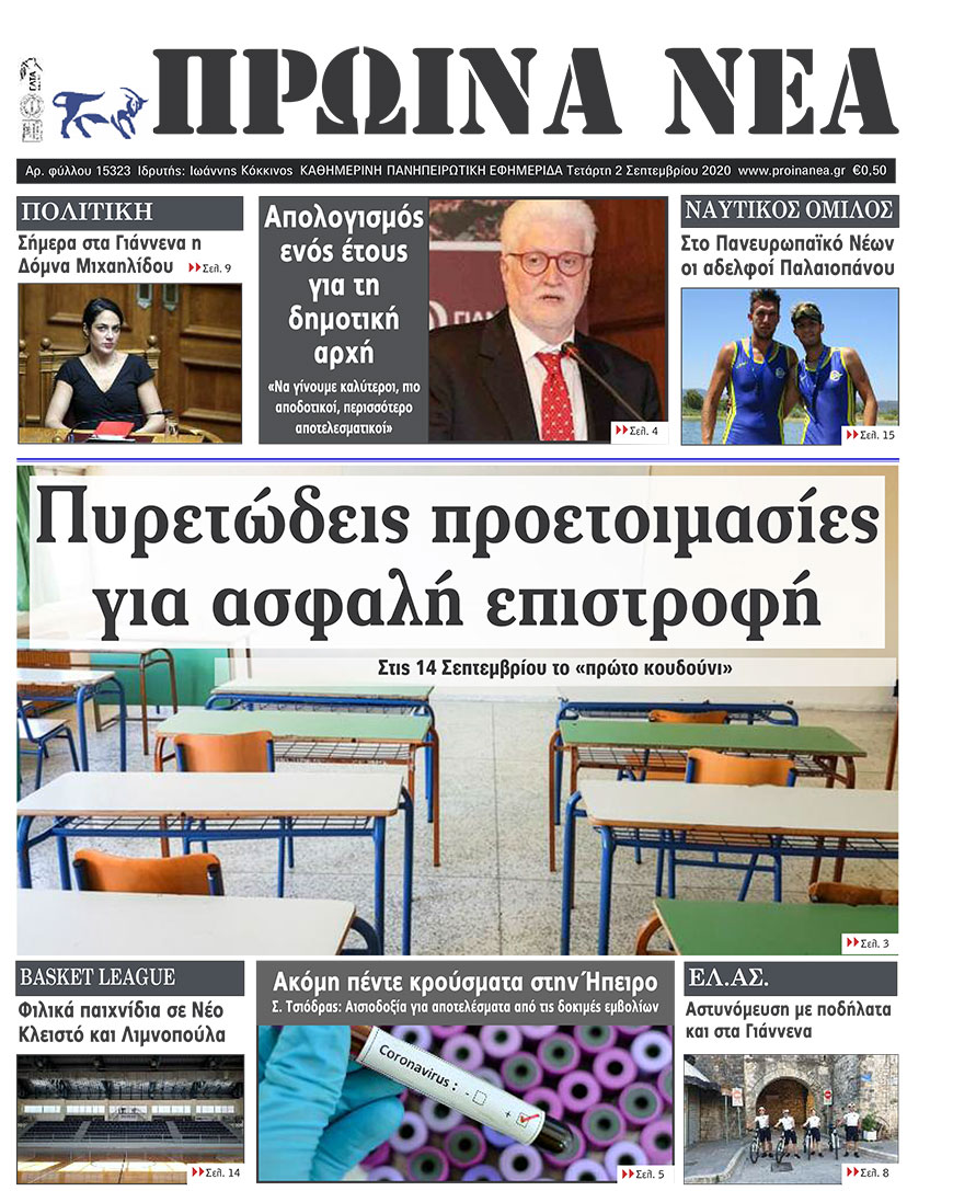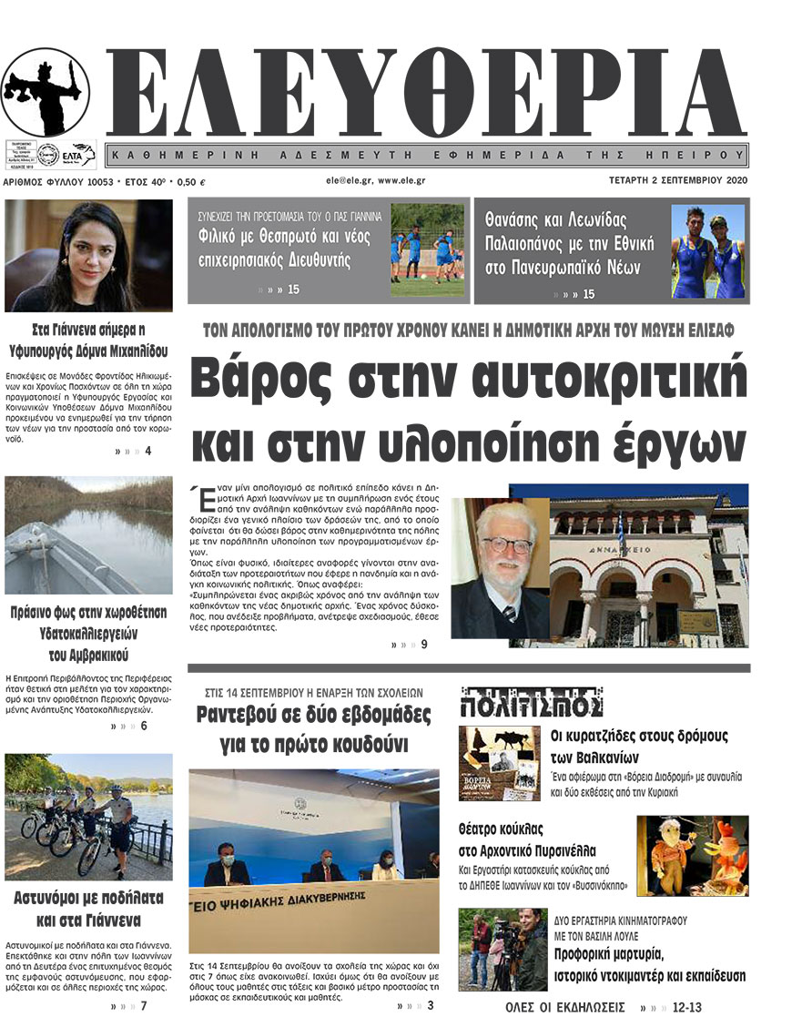 Διαβάστε στα πρωτοσέλιδα των γιαννιώτικων εφημερίδων σήμερα Τετάρτη 2 Σεπτεμβρίου