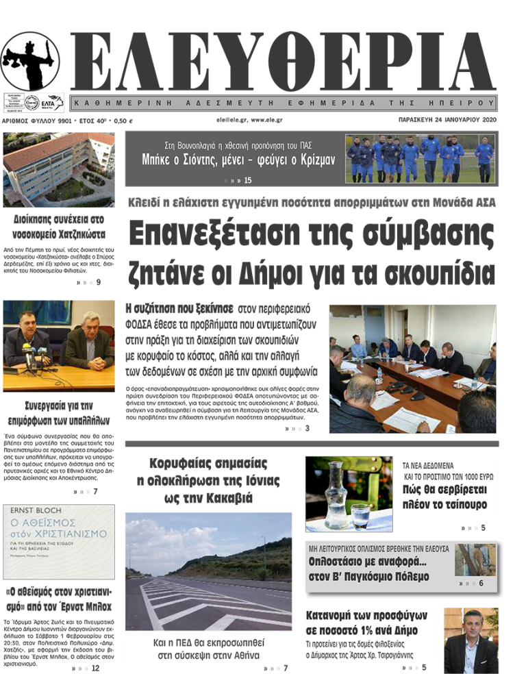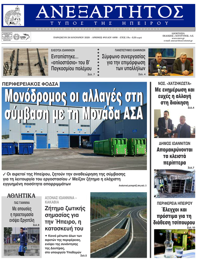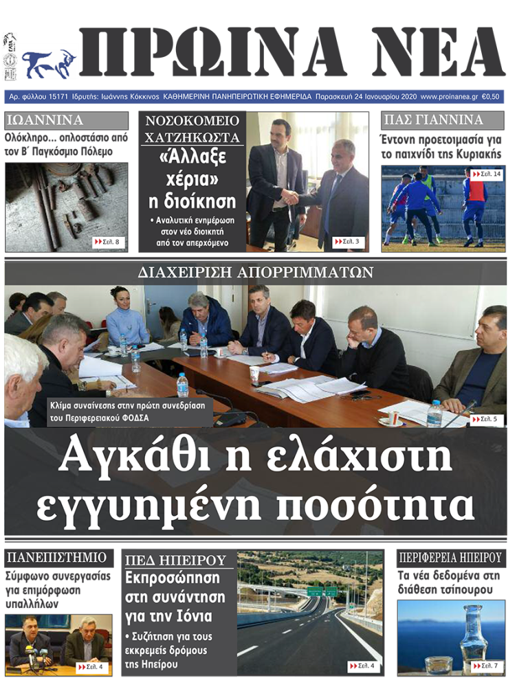 Διαβάστε στα πρωτοσέλιδα των γιαννιώτικων εφημερίδων σήμερα, Παρασκευή 24 Ιανουαρίου.