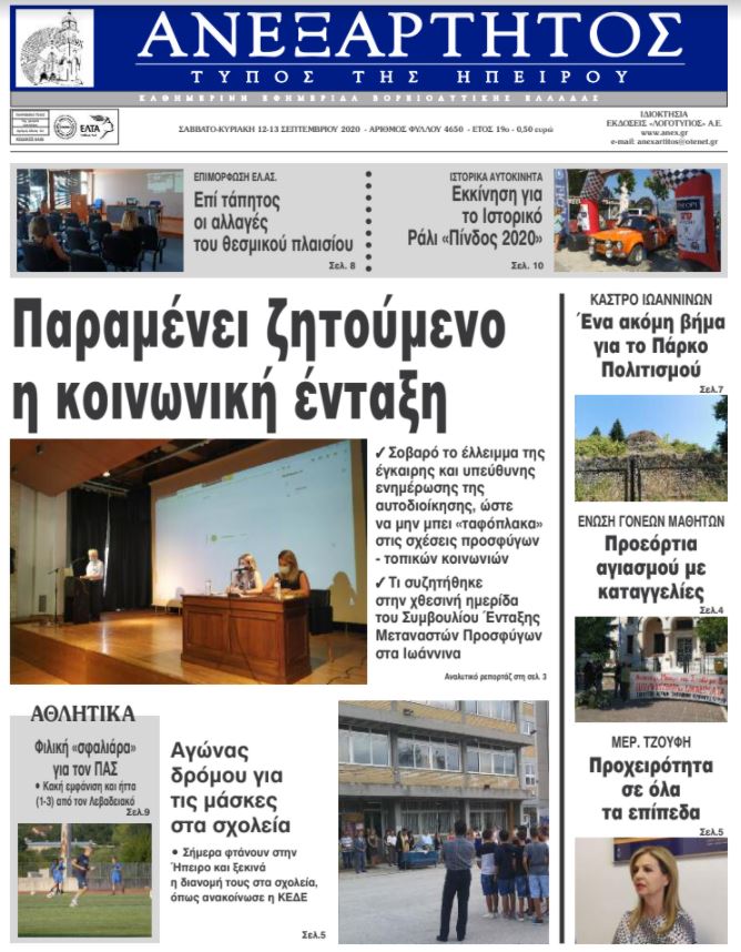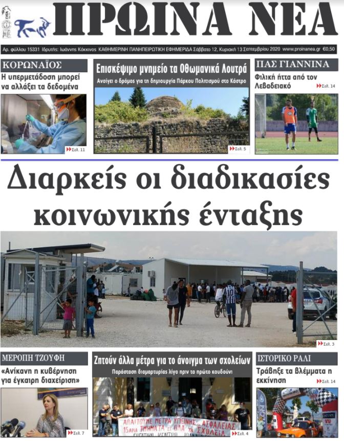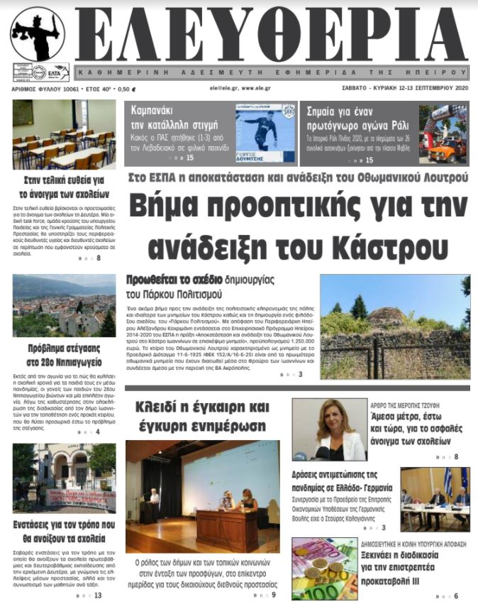 Διαβάστε στα πρωτοσέλιδα των γιαννιώτικων εφημερίδων του Σαββατοκύριακου 12-13 Σεπτεμβρίου