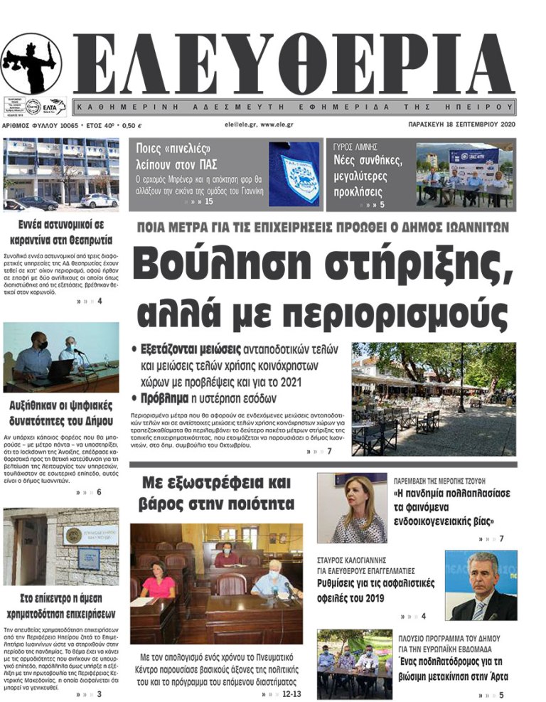ΑρχικήΕΙΔΗΣΕΙΣΗΠΕΙΡΟΣ ΗΠΕΙΡΟΣ Τα πρωτοσέλιδα των γιαννιώτικων εφημερίδων 18.09.2020 335 FacebookTwitterWhatsAppEmailΤυπώνωViber Διαβάστε στα πρωτοσέλιδα των γιαννιώτικων εφημερίδων σήμερα Παρασκευή 18 Σεπτεμβρίου TagsΓΙΑΝΝΙΩΤΙΚΕΣ ΕΦΗΜΕΡΙΔΕΣΠΡΩΤΟΣΕΛΙΔΑ FacebookTwitterWhatsAppEmailΤυπώνωViber Προηγούμενο άρθροΠροσαγωγή ιατρού από το Εσωτερικών ΥποθέσεωνΕπόμενο άρθροΑναβάλλεται η επίσκεψη Αραχωβίτη στα Ιωάννινα ΣΧΕΤΙΚΑ ΑΡΘΡΑ Τα πρωτοσέλιδα των γιαννιώτικων εφημερίδων TOP STORIES 22.11.2025 Τα πρωτοσέλιδα των γιαννιώτικων εφημερίδων ΗΠΕΙΡΟΣ 21.11.2025 Τα πρωτοσέλιδα των γιαννιώτικων εφημερίδων TOP STORIES 20.11.2025 Τα πρωτοσέλιδα των γιαννιώτικων εφημερίδων ΗΠΕΙΡΟΣ 19.11.2025 Τα πρωτοσέλιδα των γιαννιώτικων εφημερίδων ΗΠΕΙΡΟΣ 18.11.2025 Τα πρωτοσέλιδα των γιαννιώτικων εφημερίδων ΗΠΕΙΡΟΣ 15.11.2025 ΣΤΗΝ ΙΔΙΑ ΚΑΤΗΓΟΡΙΑ Τα πρωτοσέλιδα των γιαννιώτικων εφημερίδων TOP STORIES 22.11.2025 Ημέρα Ενόπλων Δυνάμεων με αποκαλυπτήρια προτομών ΗΠΕΙΡΟΣ 21.11.2025 Έρευνες για φόλες στα Τζουμέρκα μετά τον θάνατο κυνηγετικών σκύλων ΗΠΕΙΡΟΣ 21.11.2025 Σε δημόσια πρόσκληση για την αξιοποίηση του Ξενία Ηγουμενίτσας προχωρά η ΕΤΑΔ ΗΠΕΙΡΟΣ 21.11.2025 Ήχησε το «112» στα Ιωάννινα ΗΠΕΙΡΟΣ 21.11.2025 Υπερχείλιση του Αράχθου στην Πλάκα – Φερτά υλικά κάλυψαν τη γέφυρα Μπέλεϋ ΗΠΕΙΡΟΣ 21.11.2025 ΜΗ ΧΑΣΕΤΕ Ικανοποίηση για τη μείωση της ανεργίας Τα πρωτοσέλιδα των γιαννιώτικων εφημερίδων Ημέρα Ενόπλων Δυνάμεων με αποκαλυπτήρια προτομών Ήχησε το «112» στα Ιωάννινα Υπερχείλιση του Αράχθου στην Πλάκα – Φερτά υλικά κάλυψαν τη γέφυρα Μπέλεϋ ΔΗΜΟΦΙΛΗ 22.698 εγγεγραμμένοι άνεργοι τον Οκτώβριο στην Ήπειρο ΥΠΕΡ e-ΕΦΚΑ -Επιστροφή αχρεωστήτως καταβληθέντων Ικανοποίηση για τη μείωση της ανεργίας Τα πρωτοσέλιδα των γιαννιώτικων εφημερίδων Νέα μέτρα προστασίας της κτηνοτροφίας