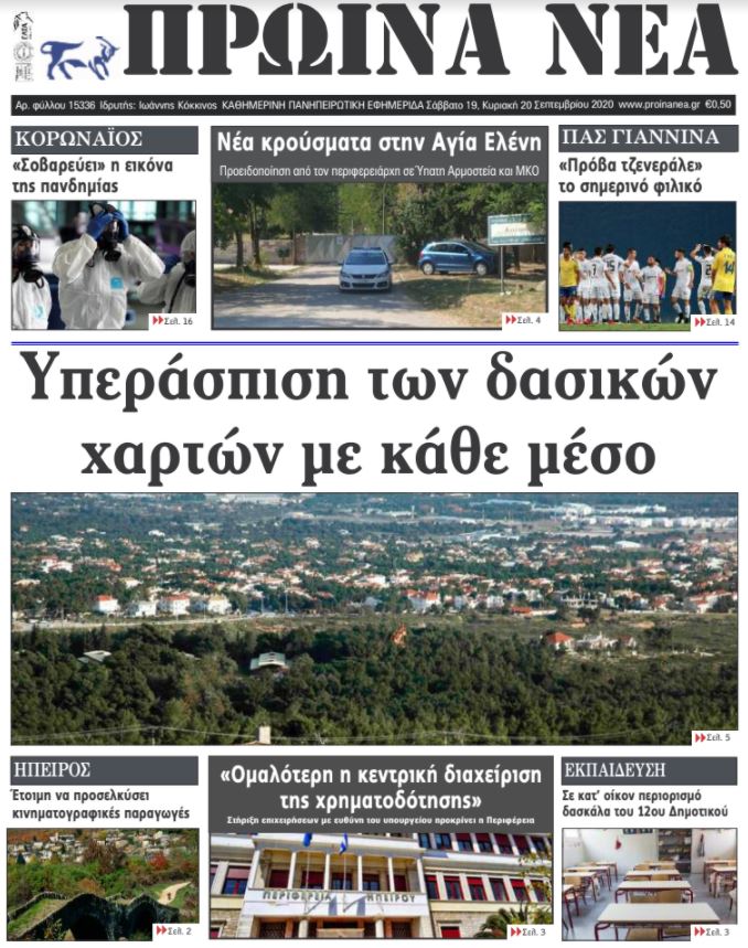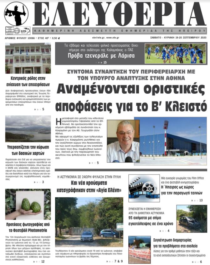 Διαβάστε στα πρωτοσέλιδα των γιαννιώτικων εφημερίδων του Σαββατοκύριακου 19-20 Σεπτεμβρίου