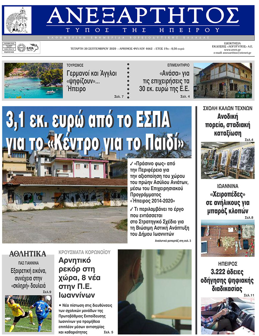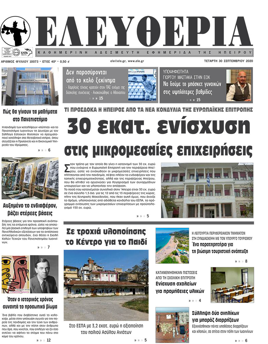 ΑρχικήΕΙΔΗΣΕΙΣΗΠΕΙΡΟΣ ΗΠΕΙΡΟΣ Τα πρωτοσέλιδα των γιαννιώτικων εφημερίδων 30.09.2020 182 FacebookTwitterWhatsAppEmailΤυπώνωViber Διαβάστε στα πρωτοσέλιδα των γιαννιώτικων εφημερίδων της Τετάρτης 30 Σεπτεμβρίου TagsΓΙΑΝΝΙΩΤΙΚΕΣ ΕΦΗΜΕΡΙΔΕΣΠΡΩΤΟΣΕΛΙΔΑ FacebookTwitterWhatsAppEmailΤυπώνωViber Προηγούμενο άρθροΣτον μικρό τελικό η γιαννιώτικη Τετράκωπος των ΕφήβωνΕπόμενο άρθροΕνίσχυση σχολείων για προμήθειες υλικών ΣΧΕΤΙΚΑ ΑΡΘΡΑ Τα πρωτοσέλιδα των γιαννιώτικων εφημερίδων TOP STORIES 22.11.2025 Τα πρωτοσέλιδα των γιαννιώτικων εφημερίδων ΗΠΕΙΡΟΣ 21.11.2025 Τα πρωτοσέλιδα των γιαννιώτικων εφημερίδων TOP STORIES 20.11.2025 Τα πρωτοσέλιδα των γιαννιώτικων εφημερίδων ΗΠΕΙΡΟΣ 19.11.2025 Τα πρωτοσέλιδα των γιαννιώτικων εφημερίδων ΗΠΕΙΡΟΣ 18.11.2025 Τα πρωτοσέλιδα των γιαννιώτικων εφημερίδων ΗΠΕΙΡΟΣ 15.11.2025 ΣΤΗΝ ΙΔΙΑ ΚΑΤΗΓΟΡΙΑ Τα πρωτοσέλιδα των γιαννιώτικων εφημερίδων TOP STORIES 22.11.2025 Ημέρα Ενόπλων Δυνάμεων με αποκαλυπτήρια προτομών ΗΠΕΙΡΟΣ 21.11.2025 Έρευνες για φόλες στα Τζουμέρκα μετά τον θάνατο κυνηγετικών σκύλων ΗΠΕΙΡΟΣ 21.11.2025 Σε δημόσια πρόσκληση για την αξιοποίηση του Ξενία Ηγουμενίτσας προχωρά η ΕΤΑΔ ΗΠΕΙΡΟΣ 21.11.2025 Ήχησε το «112» στα Ιωάννινα ΗΠΕΙΡΟΣ 21.11.2025 Υπερχείλιση του Αράχθου στην Πλάκα – Φερτά υλικά κάλυψαν τη γέφυρα Μπέλεϋ ΗΠΕΙΡΟΣ 21.11.2025 ΜΗ ΧΑΣΕΤΕ Ικανοποίηση για τη μείωση της ανεργίας Τα πρωτοσέλιδα των γιαννιώτικων εφημερίδων Ημέρα Ενόπλων Δυνάμεων με αποκαλυπτήρια προτομών Ήχησε το «112» στα Ιωάννινα Υπερχείλιση του Αράχθου στην Πλάκα – Φερτά υλικά κάλυψαν τη γέφυρα Μπέλεϋ ΔΗΜΟΦΙΛΗ 22.698 εγγεγραμμένοι άνεργοι τον Οκτώβριο στην Ήπειρο Ικανοποίηση για τη μείωση της ανεργίας Τα του Καίσαρος… ΥΠΕΡ e-ΕΦΚΑ -Επιστροφή αχρεωστήτως καταβληθέντων Νέα μέτρα προστασίας της κτηνοτροφίας