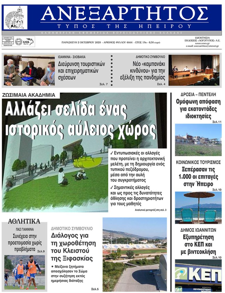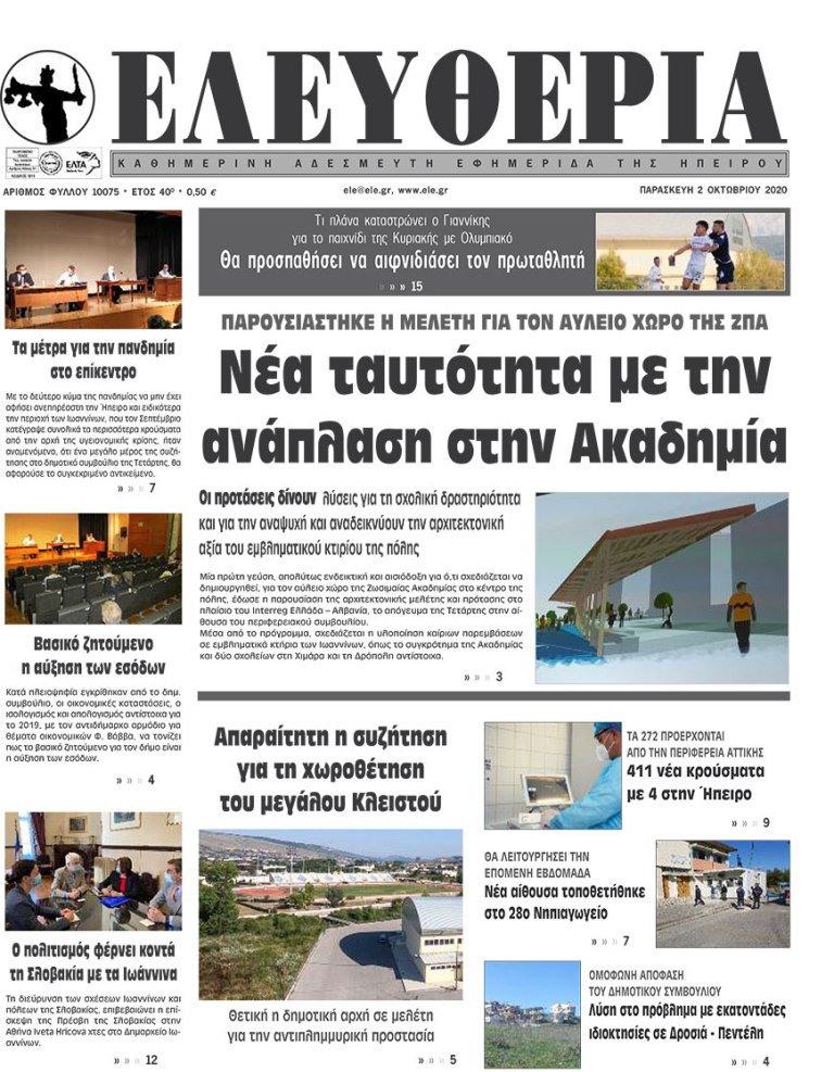 Διαβάστε στα πρωτοσέλιδα των γιαννιώτικων εφημερίδων της Παρασκευής 2 Οκτωβρίου