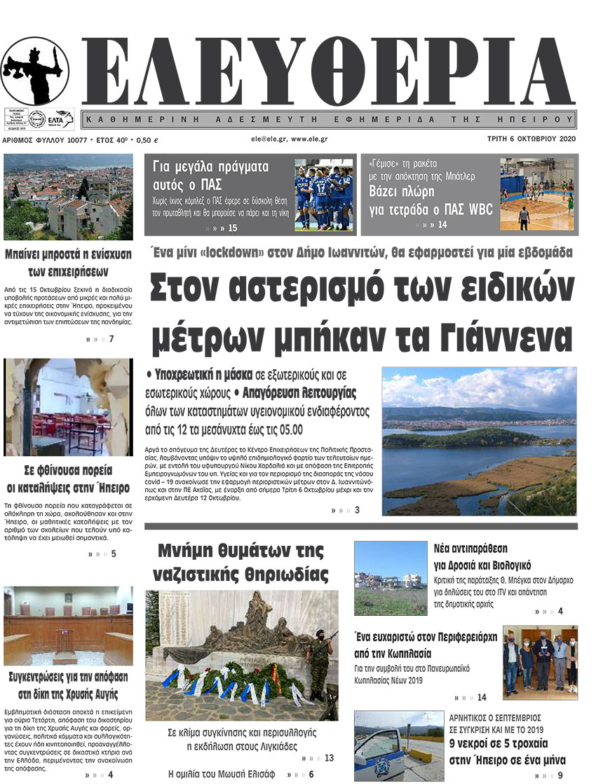 ΑρχικήΕΙΔΗΣΕΙΣΗΠΕΙΡΟΣ ΗΠΕΙΡΟΣ Τα πρωτοσέλιδα των γιαννιώτικων εφημερίδων 06.10.2020 185 FacebookTwitterWhatsAppEmailΤυπώνωViber Διαβάστε στα πρωτοσέλιδα των γιαννιώτικων εφημερίδων της Τρίτης 6 Οκτωβρίου TagsΓΙΑΝΝΙΩΤΙΚΕΣ ΕΦΗΜΕΡΙΔΕΣΠΡΩΤΟΣΕΛΙΔΑ FacebookTwitterWhatsAppEmailΤυπώνωViber Προηγούμενο άρθροΜπαίνει μπροστά η ενίσχυση των επιχειρήσεωνΕπόμενο άρθροΕικόνες καταστροφής στο Λύκειο Ελεούσας – Στο σχολείο η Σήμανση για αποτυπώματα ΣΧΕΤΙΚΑ ΑΡΘΡΑ Τα πρωτοσέλιδα των γιαννιώτικων εφημερίδων TOP STORIES 20.11.2025 Τα πρωτοσέλιδα των γιαννιώτικων εφημερίδων ΗΠΕΙΡΟΣ 19.11.2025 Τα πρωτοσέλιδα των γιαννιώτικων εφημερίδων ΗΠΕΙΡΟΣ 18.11.2025 Τα πρωτοσέλιδα των γιαννιώτικων εφημερίδων ΗΠΕΙΡΟΣ 15.11.2025 Τα πρωτοσέλιδα των γιαννιώτικων εφημερίδων ΗΠΕΙΡΟΣ 14.11.2025 Τα πρωτοσέλιδα των γιαννιώτικων εφημερίδων ΗΠΕΙΡΟΣ 13.11.2025 ΣΤΗΝ ΙΔΙΑ ΚΑΤΗΓΟΡΙΑ Περιμένοντας λύση από την ελεγχόμενη στάθμευση ΗΠΕΙΡΟΣ 20.11.2025 Επικαλούνται τη συναίνεση, αλλά ενισχύουν τη σύγχυση ΗΠΕΙΡΟΣ 20.11.2025 Ζημιές από την κακοκαιρία στο Βαγκαλιάτι με πτώσεις δέντρων και κολώνας ΗΠΕΙΡΟΣ 20.11.2025 ΤΕΕ Ηπείρου: Αίτια, επιπτώσεις και στρατηγικές αντιμετώπισης της αιθαλομίχλης TOP STORIES 20.11.2025 Έντονες βροχοπτώσεις στην Ήπειρο – Δεκάδες περιστατικά για την Πυροσβεστική TOP STORIES 20.11.2025 Έκτακτο δελτίο επιδείνωσης από την ΕΜΥ – Εντείνονται οι καταιγίδες από τη νύχτα ΗΠΕΙΡΟΣ 20.11.2025 ΜΗ ΧΑΣΕΤΕ Περιμένοντας λύση από την ελεγχόμενη στάθμευση Επικαλούνται τη συναίνεση, αλλά ενισχύουν τη σύγχυση ΤΕΕ Ηπείρου: Αίτια, επιπτώσεις και στρατηγικές αντιμετώπισης της αιθαλομίχλης Έντονες βροχοπτώσεις στην Ήπειρο – Δεκάδες περιστατικά για την Πυροσβεστική Έκτακτο δελτίο επιδείνωσης από την ΕΜΥ – Εντείνονται οι καταιγίδες από τη νύχτα ΔΗΜΟΦΙΛΗ Γεραπετρίτης: ΕΕ και Ελλάδα υπέρ κάθε προσπάθειας για διακοπή των εχθροπραξιών στην Ουκρανία Ζημιές από την κακοκαιρία στο Βαγκαλιάτι με πτώσεις δέντρων και κολώνας Ξεσπά Έλληνας Ολυμπιονίκης: «Πήρα χάλκινο και δεν με ξέρει κανείς» Προϋπολογισμός 2026: Μείωση φόρων και ανάπτυξη πάνω από Ευρώπη Πέθανε ο 22χρονος που κατάπιε ολόκληρο μπέργκερ