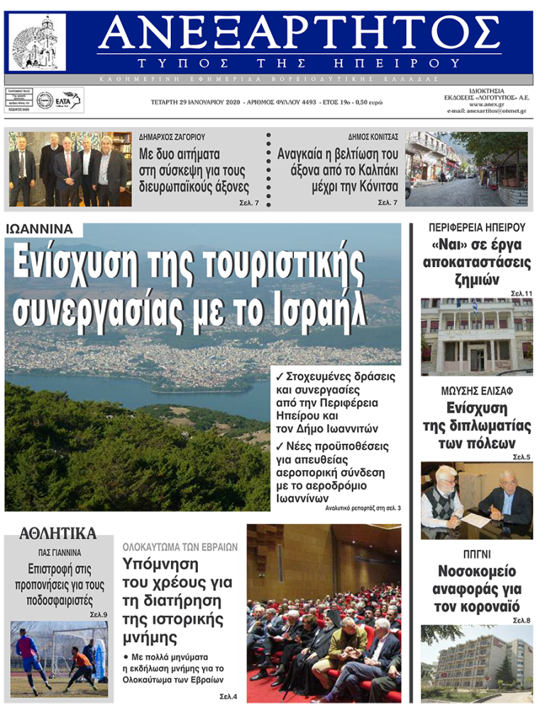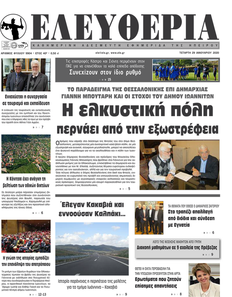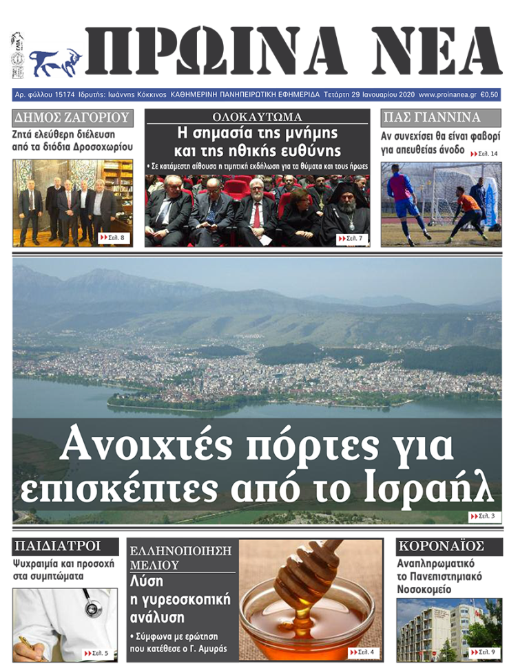 Διαβάστε στα πρωτοσέλιδα των γιαννιώτικων εφημερίδων σήμερα, Τετάρτη 29 Ιανουαρίου.