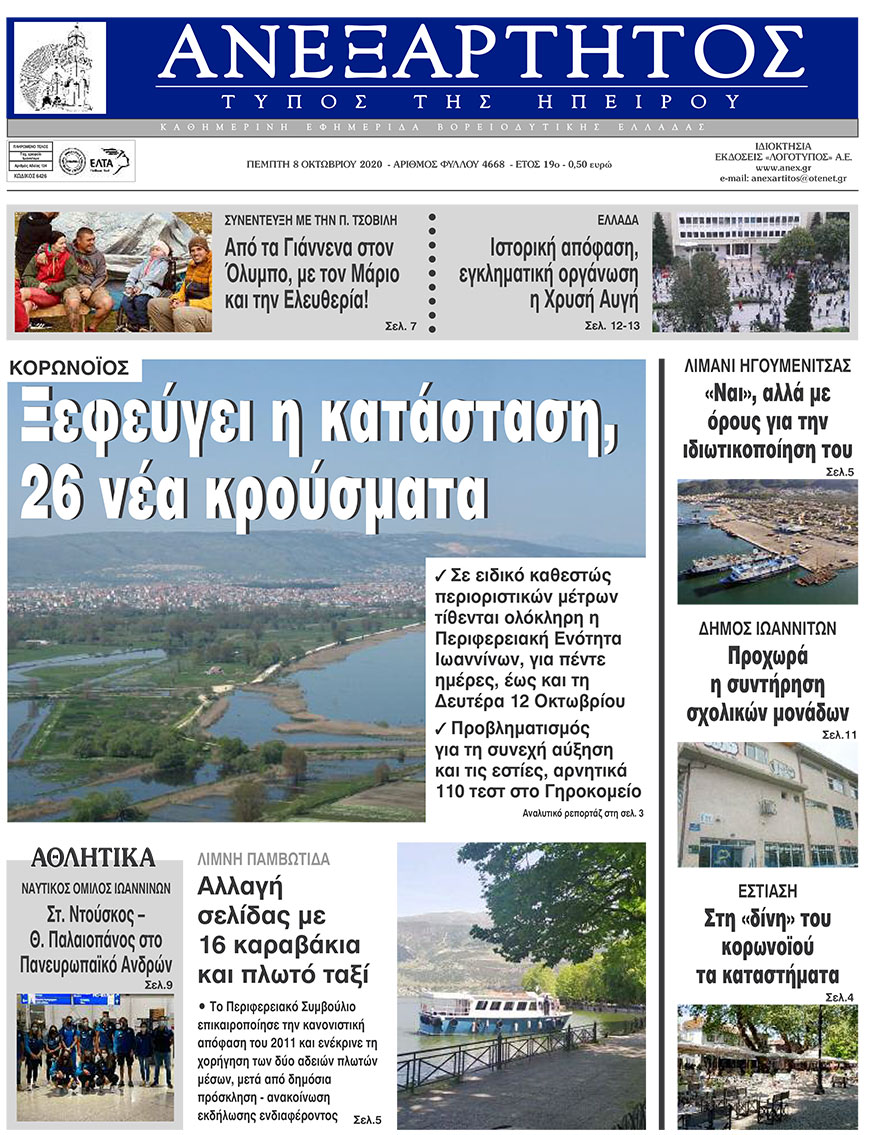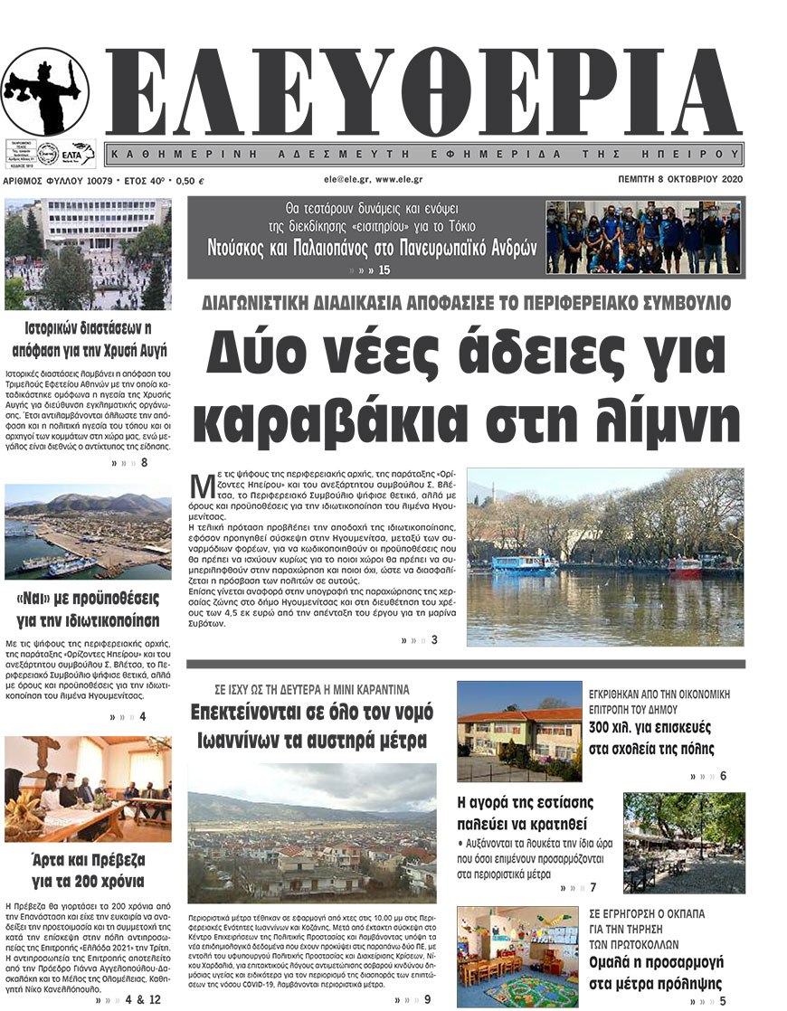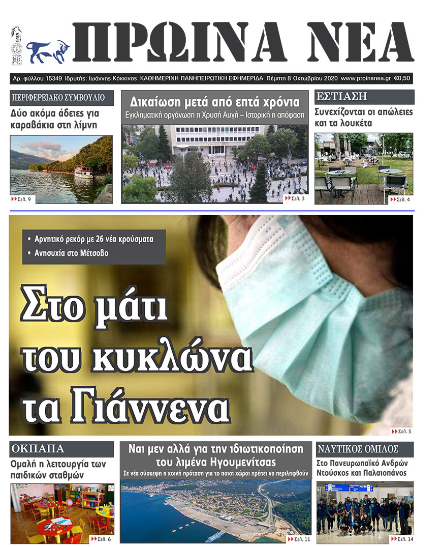 Διαβάστε στα πρωτοσέλιδα των γιαννιώτικων εφημερίδων της Πέμπτης 8 Οκτωβρίου