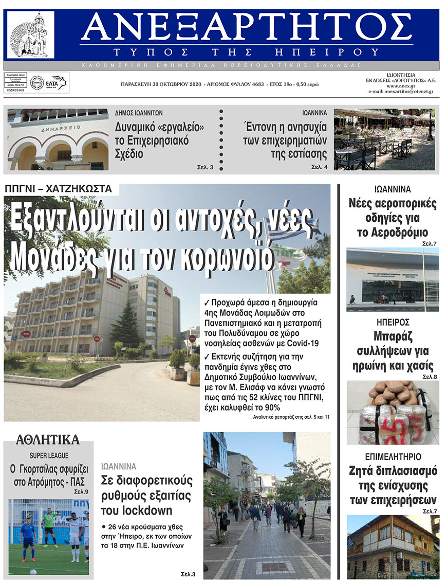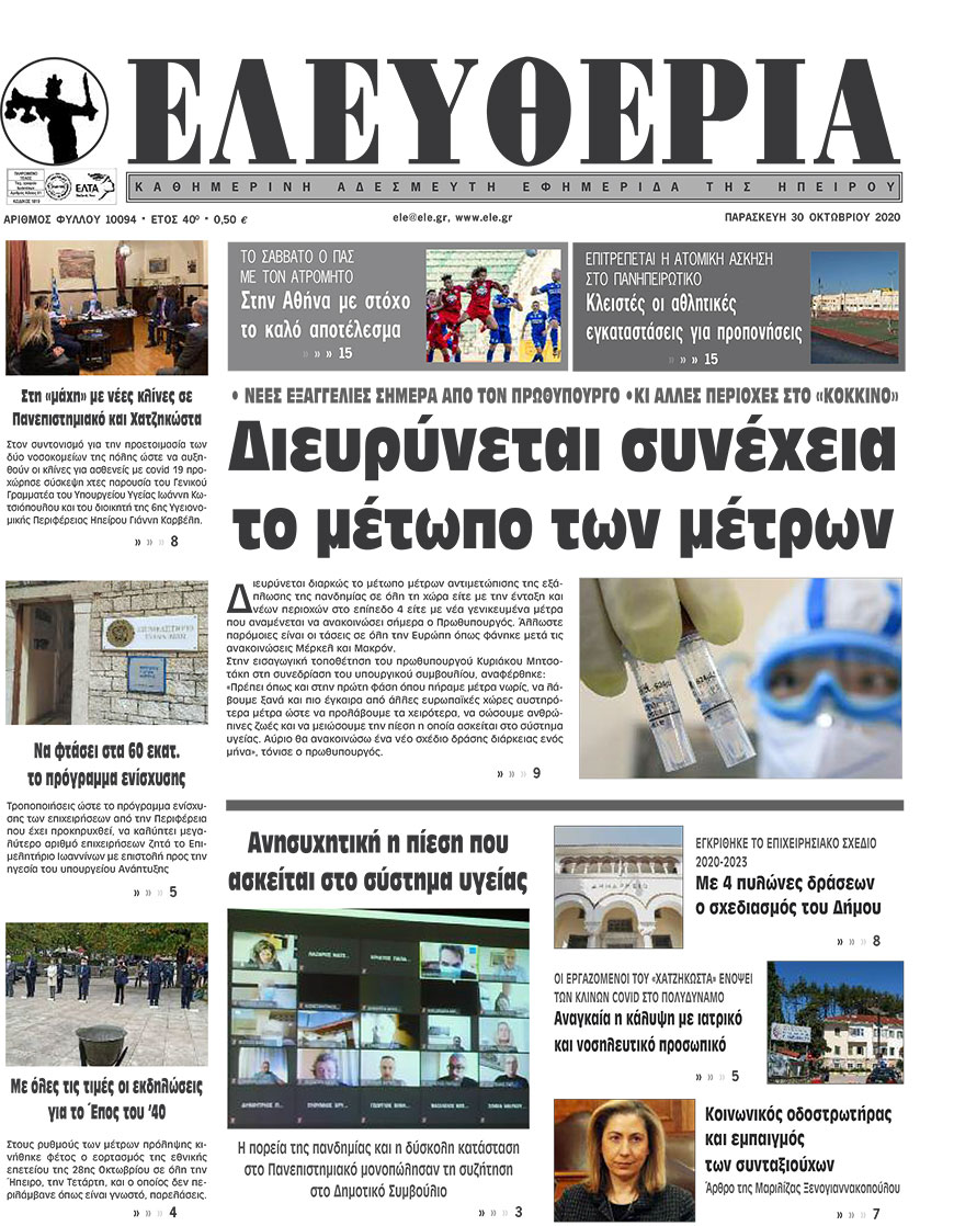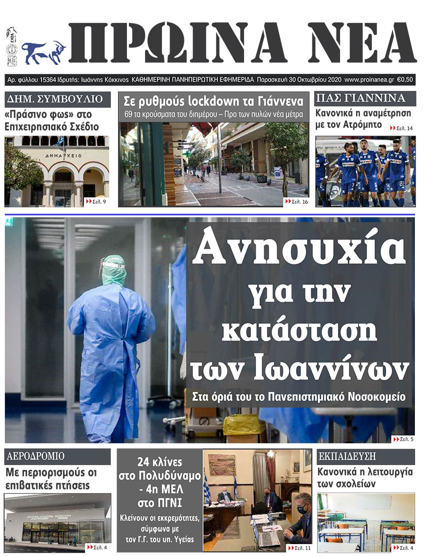 Διαβάστε στα πρωτοσέλιδα των γιαννιώτικων εφημερίδων της Παρασκευής 30 Οκτωβρίου