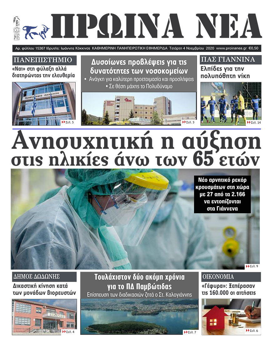 Διαβάστε στα πρωτοσέλιδα των γιαννιώτικων εφημερίδων της Τετάρτης 4 Νοεμβρίου