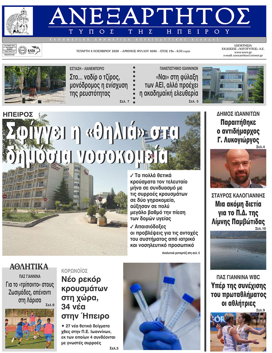 Διαβάστε στα πρωτοσέλιδα των γιαννιώτικων εφημερίδων της Τετάρτης 4 Νοεμβρίου