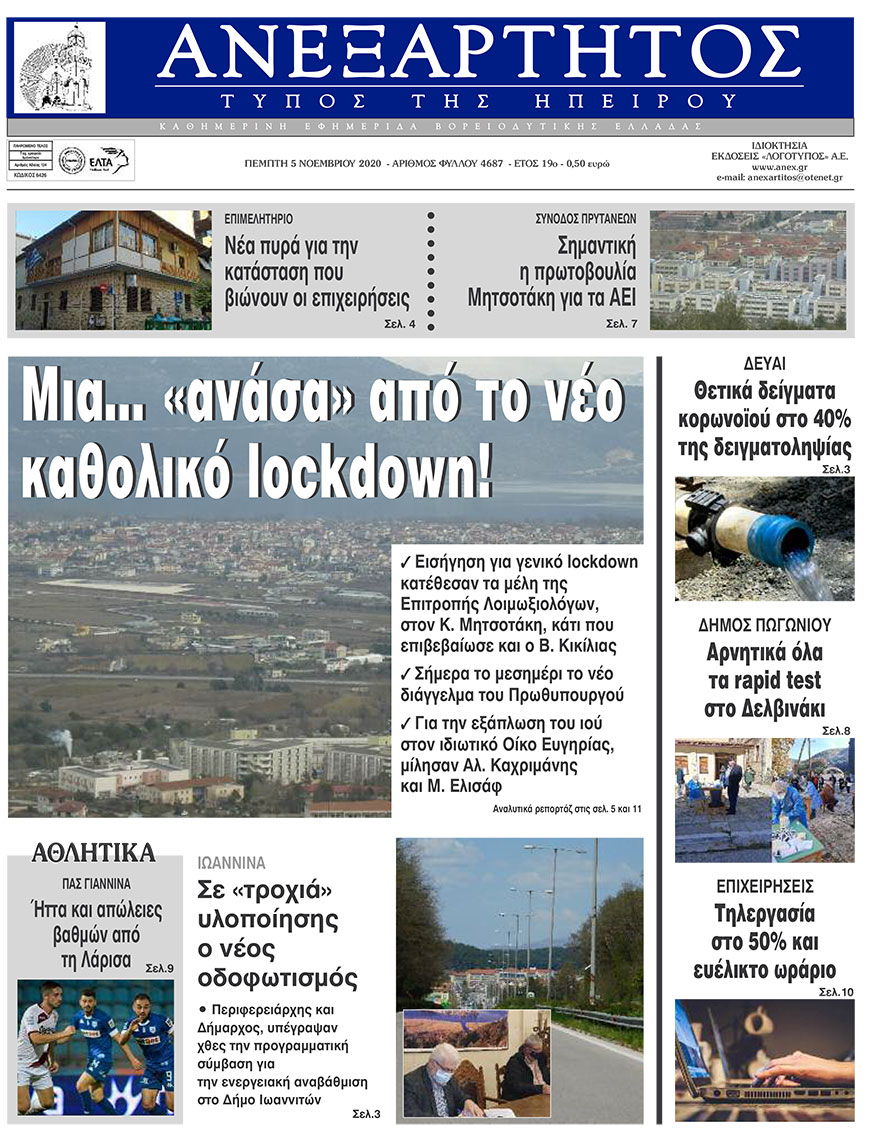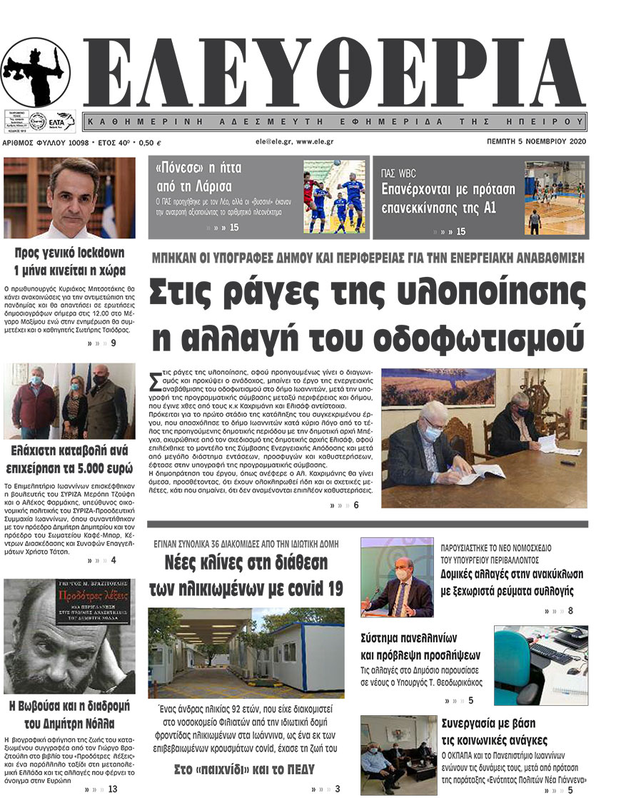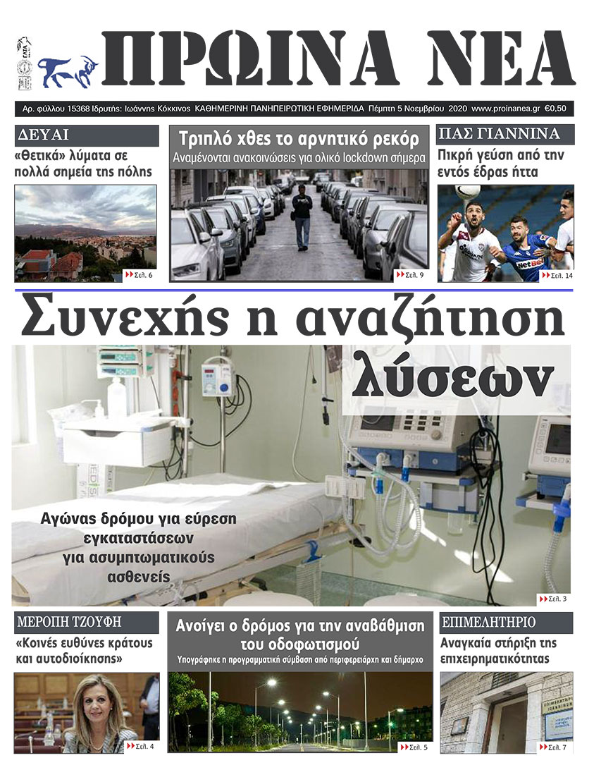 Διαβάστε στα πρωτοσέλιδα των γιαννιώτικων εφημερίδων της Πέμπτης 5 Νοεμβρίου