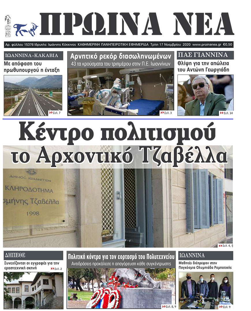 ΑρχικήΕΙΔΗΣΕΙΣΗΠΕΙΡΟΣ ΗΠΕΙΡΟΣ Τα πρωτοσέλιδα των γιαννιώτικων εφημερίδων 17.11.2020 140 FacebookTwitterWhatsAppEmailΤυπώνωViber Διαβάστε στα πρωτοσέλιδα των γιαννιώτικων εφημερίδων της Τρίτης 17 Νοεμβρίου TagsΓΙΑΝΝΙΩΤΙΚΕΣ ΕΦΗΜΕΡΙΔΕΣΠΡΩΤΟΣΕΛΙΔΑ FacebookTwitterWhatsAppEmailΤυπώνωViber Προηγούμενο άρθροΑπό τα φαρμακεία του ΕΟΠΥΥ θα εξυπηρετούνται τα στελέχη του ΛιμενικούΕπόμενο άρθροΜία διεθνής διάκριση για μαθητές στη Ρομποτική ΣΧΕΤΙΚΑ ΑΡΘΡΑ Τα πρωτοσέλιδα των γιαννιώτικων εφημερίδων TOP STORIES 31.10.2025 Τα πρωτοσέλιδα των γιαννιώτικων εφημερίδων ΗΠΕΙΡΟΣ 30.10.2025 Τα πρωτοσέλιδα των γιαννιώτικων εφημερίδων ΗΠΕΙΡΟΣ 28.10.2025 Τα πρωτοσέλιδα των γιαννιώτικων εφημερίδων ΗΠΕΙΡΟΣ 25.10.2025 Τα πρωτοσέλιδα των γιαννιώτικων εφημερίδων ΗΠΕΙΡΟΣ 24.10.2025 Τα πρωτοσέλιδα των γιαννιώτικων εφημερίδων ΗΠΕΙΡΟΣ 23.10.2025 ΣΤΗΝ ΙΔΙΑ ΚΑΤΗΓΟΡΙΑ Οδηγούσε χωρίς άδεια που του είχε αφαιρεθεί λόγω μέθης ΗΠΕΙΡΟΣ 31.10.2025 Ακόμα δύο συλλήψεις για περιστατικό τραυματισμού ανηλίκου στη Θεσπρωτία ΗΠΕΙΡΟΣ 31.10.2025 Εξιχνίαση κλοπής κινητού από ηλικιωμένο στην Άρτα ΗΠΕΙΡΟΣ 31.10.2025 Σκληρή κριτική στη Δημ. Αρχή Δωδώνης από τον Γ. Καραμπίνα ΗΠΕΙΡΟΣ 31.10.2025 Το ΠΑΣΟΚ Θεσπρωτίας για το κλείσιμο των υποκαταστημάτων ΕΛΤΑ σε Παραμυθιά και Φιλιάτες ΗΠΕΙΡΟΣ 31.10.2025 Έτοιμο για διαγωνισμό το έργο του νέου κτιρίου της Αστυνομικής Διεύθυνσης Θεσπρωτίας ΗΠΕΙΡΟΣ 31.10.2025 ΜΗ ΧΑΣΕΤΕ Ασταθής ο καιρός – Πού αναμένονται βροχές Μειωμένη η θετικότητα για covid-19 την τελευταία εβδομάδα Οι ιχθυολόγοι κρούουν τον κώδωνα του κινδύνου Αποκλεισμένοι ακόμη και από πάρκα και πλατείες… Τα πρωτοσέλιδα των γιαννιώτικων εφημερίδων ΔΗΜΟΦΙΛΗ Πότε είναι η Black Friday και πότε ξεκινούν οι εκπτώσεις Αποφασισμένοι να κρατήσουν ανοιχτό το κατάστημα ΕΛΤΑ στα Πράμαντα Κλείνει τη Δευτέρα 3 Νοεμβρίου η πλατφόρμα Α21-Επίδομα Παιδιού Μειωμένη η θετικότητα για covid-19 την τελευταία εβδομάδα «Θηλασμός και τροφικές αλλεργίες»