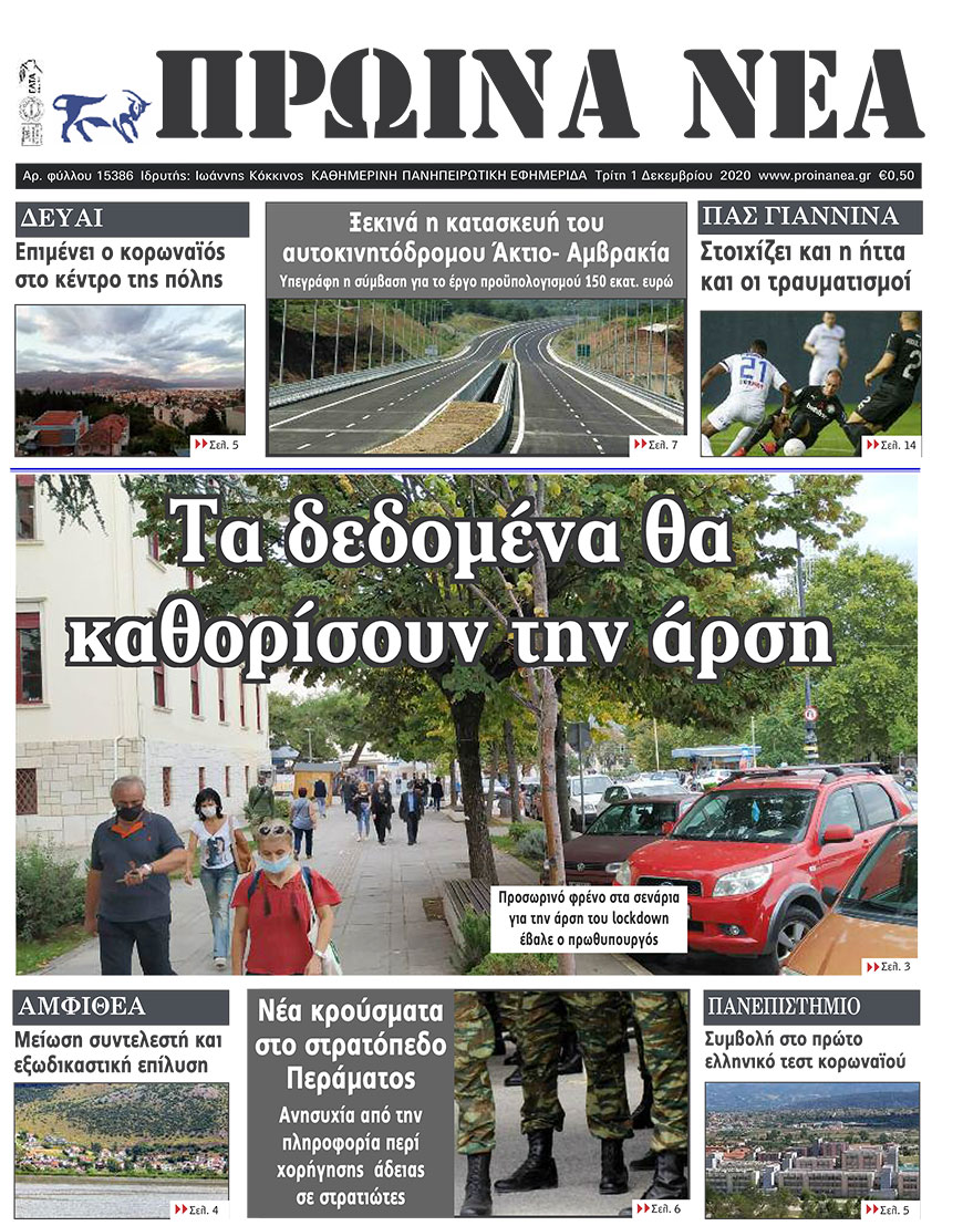 Διαβάστε στα πρωτοσέλιδα των γιαννιώτικων εφημερίδων της Τρίτης 1 Δεκεμβρίου