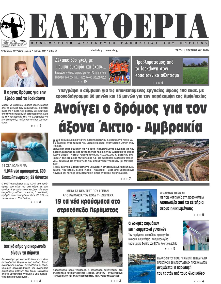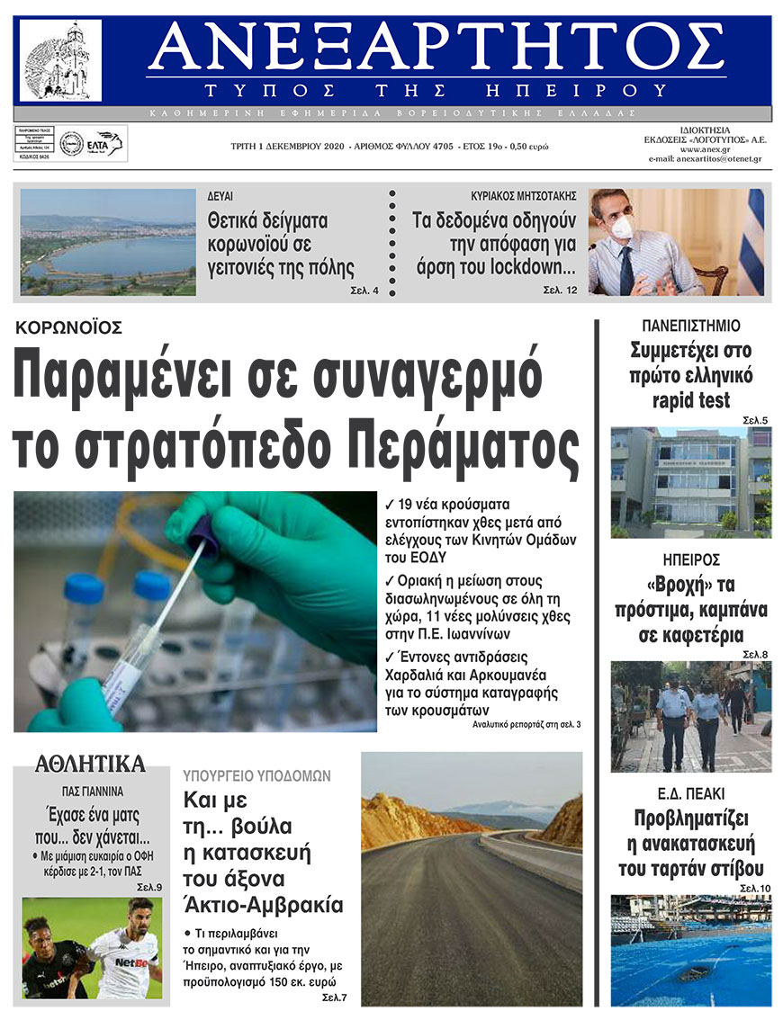 Διαβάστε στα πρωτοσέλιδα των γιαννιώτικων εφημερίδων της Τρίτης 1 Δεκεμβρίου