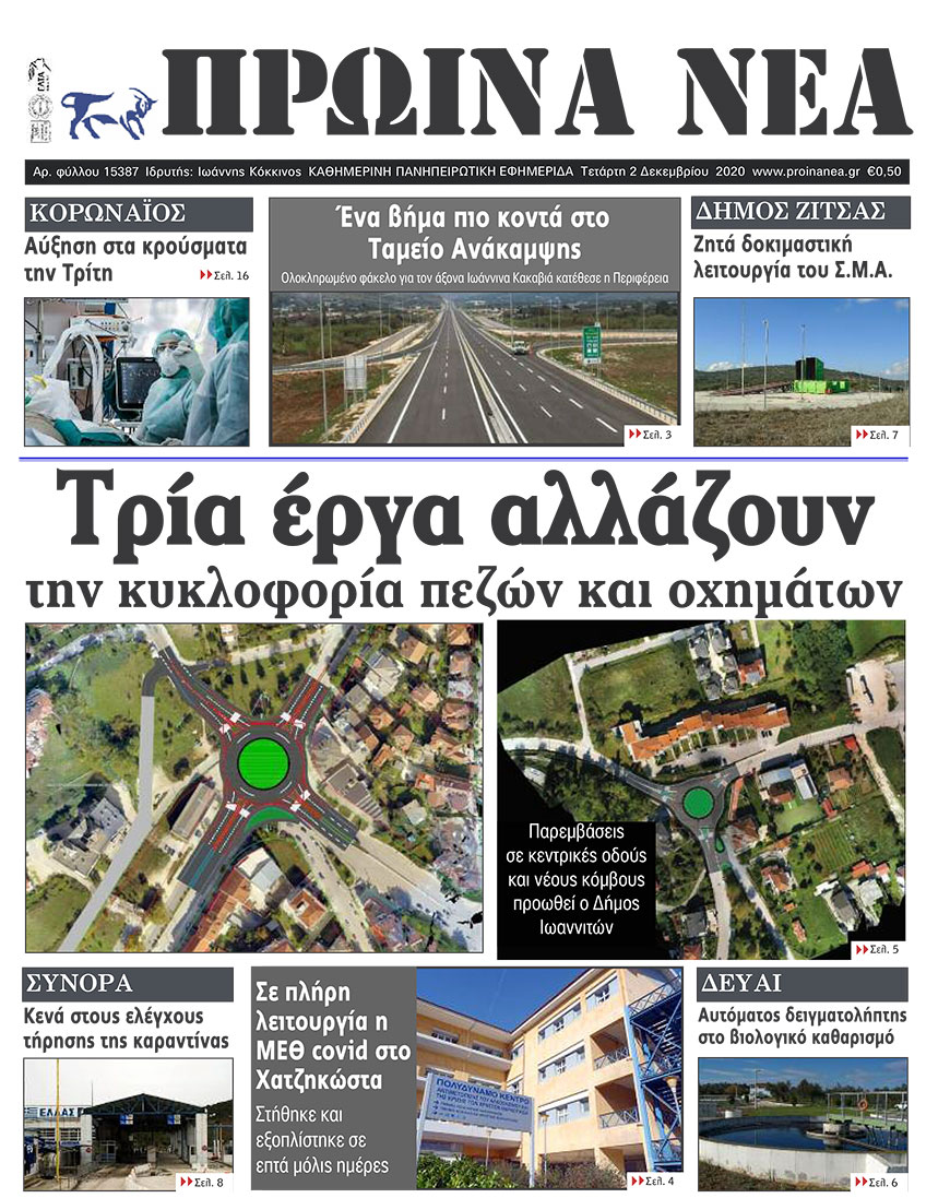 Διαβάστε στα πρωτοσέλιδα των γιαννιώτικων εφημερίδων της Τετάρτης 2 Δεκεμβρίου