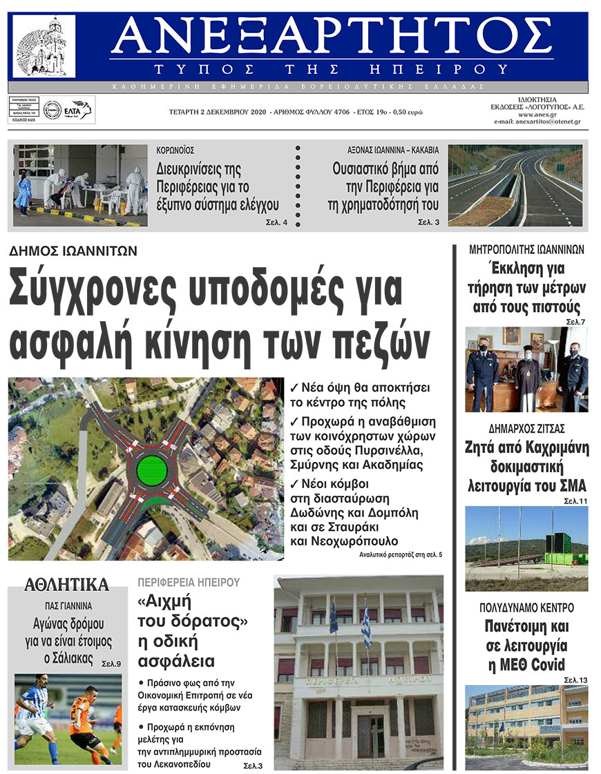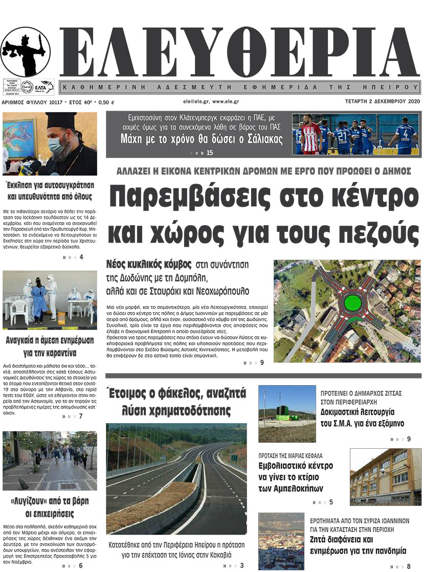 Διαβάστε στα πρωτοσέλιδα των γιαννιώτικων εφημερίδων της Τετάρτης 2 Δεκεμβρίου