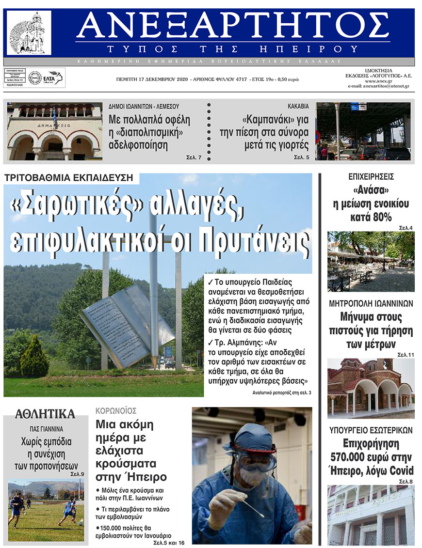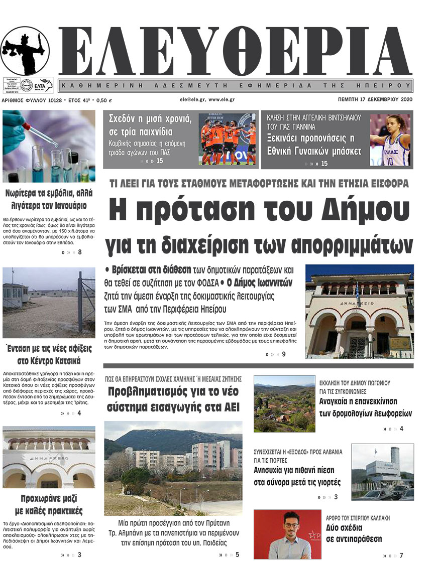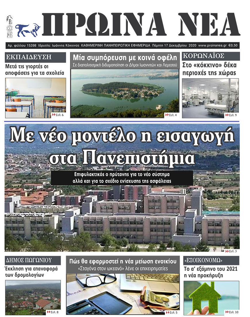 ΑρχικήΕΙΔΗΣΕΙΣΗΠΕΙΡΟΣ ΗΠΕΙΡΟΣ Τα πρωτοσέλιδα των γιαννιώτικων εφημερίδων 17.12.2020 146 FacebookTwitterWhatsAppEmailΤυπώνωViber Διαβάστε στα πρωτοσέλιδα των γιαννιώτικων εφημερίδων της Πέμπτης 17 Δεκεμβρίου TagsΓΙΑΝΝΙΩΤΙΚΕΣ ΕΦΗΜΕΡΙΔΕΣΠΡΩΤΟΣΕΛΙΔΑ FacebookTwitterWhatsAppEmailΤυπώνωViber Προηγούμενο άρθροΣχεδόν η μισή χρονιά, σε τρία παιχνίδιαΕπόμενο άρθροΑρχίζει η καταγραφή των υγειονομικών που θα εμβολιαστούν πρώτοι ΣΧΕΤΙΚΑ ΑΡΘΡΑ Τα πρωτοσέλιδα των γιαννιώτικων εφημερίδων TOP STORIES 13.01.2026 Τα πρωτοσέλιδα των γιαννιώτικων εφημερίδων ΗΠΕΙΡΟΣ 11.01.2026 Τα πρωτοσέλιδα των γιαννιώτικων εφημερίδων ΗΠΕΙΡΟΣ 09.01.2026 Τα πρωτοσέλιδα των γιαννιώτικων εφημερίδων ΗΠΕΙΡΟΣ 08.01.2026 Τα πρωτοσέλιδα των γιαννιώτικων εφημερίδων ΗΠΕΙΡΟΣ 06.01.2026 Τα πρωτοσέλιδα των γιαννιώτικων εφημερίδων ΗΠΕΙΡΟΣ 01.01.2026 ΣΤΗΝ ΙΔΙΑ ΚΑΤΗΓΟΡΙΑ ΕΞΑΙΤΙΑΣ ΤΩΝ ΧΑΜΗΛΩΝ ΘΕΡΜΟΚΡΑΣΙΩΝ -Νωρίτερα η βραδινή αποκομιδή ΗΠΕΙΡΟΣ 13.01.2026 Με λαμπρότητα εορτάστηκε η μνήμη του Αγίου Ιερεμία στη Ζίτσα ΗΠΕΙΡΟΣ 13.01.2026 Γεωργόπουλος για Περιφέρεια Ηπείρου: «Αναγκαία αλλαγή ηγεσίας και διαφάνειας» ΗΠΕΙΡΟΣ 13.01.2026 Στην Κομισιόν οι διακοπές ρεύματος στην Ήπειρο ΗΠΕΙΡΟΣ 13.01.2026 Αντιδράσεις για τη συμφωνία Ε.Ε. – Mercosur και επιπτώσεις στον πρωτογενή τομέα της Ηπείρου ΗΠΕΙΡΟΣ 13.01.2026 Άμεση σύλληψη για κλοπή τσάντας από Ι.Χ. ΗΠΕΙΡΟΣ 13.01.2026 ΜΗ ΧΑΣΕΤΕ Το σχέδιο του Δήμου Ιωαννιτών για την αντιμετώπιση του κυκλοφοριακού προβλήματος Περιβαλλοντική καταστροφή στο Μονολίθι Πλημμύρισε ο χώρος πλύσης των απορριμματοφόρων του Δήμου «Μυρίζει συγκάλυψη ευθυνών» Δοκιμάζονται οι αντοχές των επιχειρήσεων ΔΗΜΟΦΙΛΗ Νέα ψυχρή εισβολή με βροχές και χιόνια το Σαββατοκύριακο Γιατί κάποιοι νιώθουν τον πόνο πιο έντονα – Η απάντηση ίσως βρίσκεται στους Νεάντερταλ Δοκιμάζονται οι αντοχές των επιχειρήσεων Όλα για όλα για την 4η θέση του πρωταθλήματος Στην Κομισιόν οι διακοπές ρεύματος στην Ήπειρο