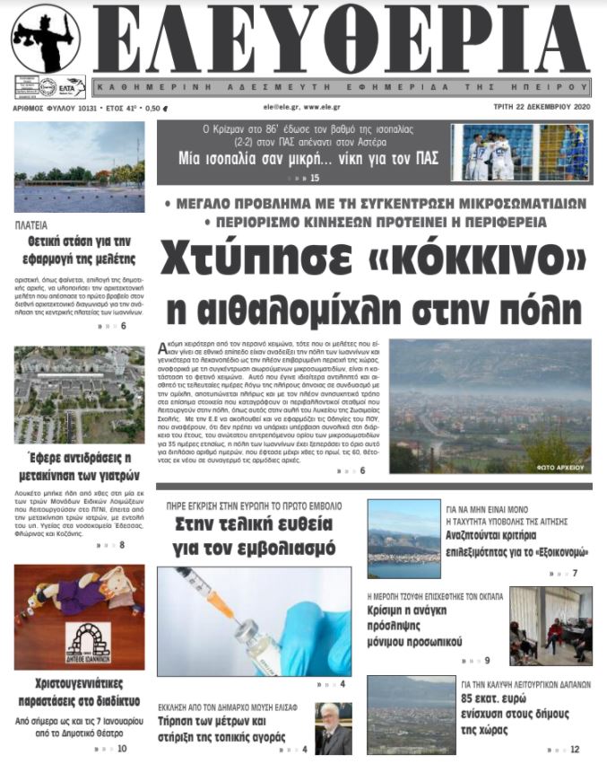 ΑρχικήTOP STORIES TOP STORIESΗΠΕΙΡΟΣ Τα πρωτοσέλιδα των γιαννιώτικων εφημερίδων 22.12.2020 123 FacebookTwitterWhatsAppEmailΤυπώνωViber Διαβάστε στα πρωτοσέλιδα των γιαννιώτικων εφημερίων της Τρίτης 22 Δεκεμβρίου TagsΓΙΑΝΝΙΩΤΙΚΕΣ ΕΦΗΜΕΡΙΔΕΣΠΡΩΤΟΣΕΛΙΔΑ FacebookTwitterWhatsAppEmailΤυπώνωViber Προηγούμενο άρθροΔΗΜΟΣ ΗΓΟΥΜΕΝΙΤΣΑΣ-Αρνητικά τα τεστ στους εργαζομένουςΕπόμενο άρθροΑνήλικοι έκλεψαν κάμερες από σχολείο ΣΧΕΤΙΚΑ ΑΡΘΡΑ Τα πρωτοσέλιδα των γιαννιώτικων εφημερίδων TOP STORIES 11.11.2025 Τα πρωτοσέλιδα των γιαννιώτικων εφημερίδων TOP STORIES 08.11.2025 Τα πρωτοσέλιδα των γιαννιώτικων εφημερίδων ΗΠΕΙΡΟΣ 07.11.2025 Τα πρωτοσέλιδα των γιαννιώτικων εφημερίδων ΗΠΕΙΡΟΣ 06.11.2025 Τα πρωτοσέλιδα των γιαννιώτικων εφημερίδων ΗΠΕΙΡΟΣ 05.11.2025 Τα πρωτοσέλιδα των γιαννιώτικων εφημερίδων ΗΠΕΙΡΟΣ 04.11.2025 ΣΤΗΝ ΙΔΙΑ ΚΑΤΗΓΟΡΙΑ Ενημερωτική δράση για τον σακχαρώδη διαβήτη στα Ιωάννινα ΗΠΕΙΡΟΣ 11.11.2025 Συνελήφθη αλλοδαπός διωκόμενος στην Κακαβιά ΗΠΕΙΡΟΣ 11.11.2025 Κατασχέθηκαν 45 αρνιά στην Πρέβεζα – Δύο συλλήψεις ΗΠΕΙΡΟΣ 11.11.2025 43χρονος βρέθηκε νεκρός εντός Ι.Χ. στο Τέροβο ΗΠΕΙΡΟΣ 11.11.2025 Επί τάπητος υποδομές, περιβάλλον και ΤΠΣ ΗΠΕΙΡΟΣ 11.11.2025 Επίδομα θέρμανσης: Νέες οδηγίες της ΑΑΔΕ TOP STORIES 11.11.2025 ΜΗ ΧΑΣΕΤΕ 43χρονος βρέθηκε νεκρός εντός Ι.Χ. στο Τέροβο Επίδομα θέρμανσης: Νέες οδηγίες της ΑΑΔΕ Σε αυξημένη ετοιμότητα η Ήπειρος για τη γρίπη των πτηνών Δωρεά ζωής από ασθενή στο ΠΓΝΙ Νέες αντιδράσεις για τις παρεμβάσεις στο Γράμμο ΔΗΜΟΦΙΛΗ Τρεις εύκολοι τρόποι για να ξεπεραστεί η μελαγχολία του χειμώνα Μητσοτάκης: Μείωση κατά 34% των θανάτων από τροχαία Επίδομα θέρμανσης: Νέες οδηγίες της ΑΑΔΕ Κομπίνα με μεταχειρισμένα οχήματα ξεσκέπασε η ΑΑΔΕ Νέα σύνθεση στη Νομαρχιακή Επιτροπή του ΣΥΡΙΖΑ-ΠΣ Ιωαννίνων