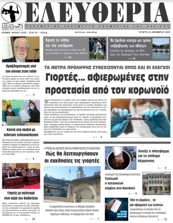 ΑρχικήΕΙΔΗΣΕΙΣΗΠΕΙΡΟΣ ΗΠΕΙΡΟΣ Τα πρωτοσέλιδα των γιαννιώτικων εφημερίδων 23.12.2020 164 FacebookTwitterWhatsAppEmailΤυπώνωViber Διαβάστε στα πρωτοσέλιδα των γιαννιώτικων εφημερίων της Τετάρτης 23 Δεκεμβρίου TagsΓΙΑΝΝΙΩΤΙΚΕΣ ΕΦΗΜΕΡΙΔΕΣΠΡΩΤΟΣΕΛΙΔΑ FacebookTwitterWhatsAppEmailΤυπώνωViber Προηγούμενο άρθροe-ΕΦΚΑ-Στις 24 Δεκεμβρίου, η καταβολή αδειοδωροσήμου στους εργατοτεχνίτες οικοδόμουςΕπόμενο άρθροΠρωτοχρονιάτικο λαχείο: Πρώτη φορά στον «αέρα» η κυκλοφορία του λόγω κορωνοϊού ΣΧΕΤΙΚΑ ΑΡΘΡΑ Τα πρωτοσέλιδα των γιαννιώτικων εφημερίδων TOP STORIES 31.10.2025 Τα πρωτοσέλιδα των γιαννιώτικων εφημερίδων ΗΠΕΙΡΟΣ 30.10.2025 Τα πρωτοσέλιδα των γιαννιώτικων εφημερίδων ΗΠΕΙΡΟΣ 28.10.2025 Τα πρωτοσέλιδα των γιαννιώτικων εφημερίδων ΗΠΕΙΡΟΣ 25.10.2025 Τα πρωτοσέλιδα των γιαννιώτικων εφημερίδων ΗΠΕΙΡΟΣ 24.10.2025 Τα πρωτοσέλιδα των γιαννιώτικων εφημερίδων ΗΠΕΙΡΟΣ 23.10.2025 ΣΤΗΝ ΙΔΙΑ ΚΑΤΗΓΟΡΙΑ Κλειστή για τεχνικούς λόγους η Εταιρεία Ηπειρωτικών Μελετών ΗΠΕΙΡΟΣ 31.10.2025 Αναβαθμίστηκε αισθητικά και λειτουργικά το Καμπέρειο Θέατρο ΗΠΕΙΡΟΣ 31.10.2025 Δίκτυο «Πίνδος»: Το γράμμα της ορεινής Ελλάδας δεν πρέπει να μείνει χωρίς παραλήπτη ΗΠΕΙΡΟΣ 31.10.2025 Οδηγούσε χωρίς άδεια που του είχε αφαιρεθεί λόγω μέθης ΗΠΕΙΡΟΣ 31.10.2025 Ακόμα δύο συλλήψεις για περιστατικό τραυματισμού ανηλίκου στη Θεσπρωτία ΗΠΕΙΡΟΣ 31.10.2025 Εξιχνίαση κλοπής κινητού από ηλικιωμένο στην Άρτα ΗΠΕΙΡΟΣ 31.10.2025 ΜΗ ΧΑΣΕΤΕ Ασταθής ο καιρός – Πού αναμένονται βροχές Μειωμένη η θετικότητα για covid-19 την τελευταία εβδομάδα Οι ιχθυολόγοι κρούουν τον κώδωνα του κινδύνου Αποκλεισμένοι ακόμη και από πάρκα και πλατείες… Τα πρωτοσέλιδα των γιαννιώτικων εφημερίδων ΔΗΜΟΦΙΛΗ Μία αρχηγική επιστροφή στον ΠΑΣ Στον Εισαγγελέα του Αρείου Πάγου ο Κώστας Τσιάρας για την ευλογιά αιγοπροβάτων Η νόσηση με Covid-19 στην εγκυμοσύνη μπορεί να επηρεάσει την ανάπτυξη του εγκεφάλου του παιδιού Μαθήτρια 10 ετών κατέρρευσε στο σχολείο, την ώρα της γυμναστικής ΕΛΤΑ: Διαβεβαιώσεις ότι «κανένας Έλληνας δεν θα μείνει χωρίς ταχυδρόμο»