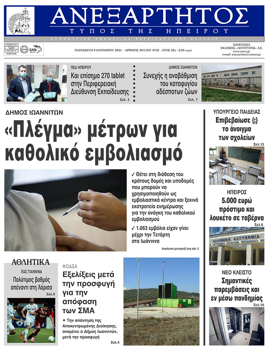 ΑρχικήΕΙΔΗΣΕΙΣΗΠΕΙΡΟΣ ΗΠΕΙΡΟΣ Τα πρωτοσέλιδα των γιαννιώτικων εφημερίδων 08.01.2021 117 FacebookTwitterWhatsAppEmailΤυπώνωViber Διαβάστε στα πρωτοσέλιδα των γιαννιώτικων εφημερίδων της Παρασκευής 8 Ιανουαρίου TagsΓΙΑΝΝΙΩΤΙΚΕΣ ΕΦΗΜΕΡΙΔΕΣΠΡΩΤΟΣΕΛΙΔΑ FacebookTwitterWhatsAppEmailΤυπώνωViber Προηγούμενο άρθροΝέα παράταση στην ισχύ των αδειών οδήγησης έως 31 ΙανουαρίουΕπόμενο άρθροΕπιστροφή στην τηλεκπαίδευση για γυμνάσια και λύκεια ΣΧΕΤΙΚΑ ΑΡΘΡΑ Τα πρωτοσέλιδα των γιαννιώτικων εφημερίδων TOP STORIES 31.10.2025 Τα πρωτοσέλιδα των γιαννιώτικων εφημερίδων ΗΠΕΙΡΟΣ 30.10.2025 Τα πρωτοσέλιδα των γιαννιώτικων εφημερίδων ΗΠΕΙΡΟΣ 28.10.2025 Τα πρωτοσέλιδα των γιαννιώτικων εφημερίδων ΗΠΕΙΡΟΣ 25.10.2025 Τα πρωτοσέλιδα των γιαννιώτικων εφημερίδων ΗΠΕΙΡΟΣ 24.10.2025 Τα πρωτοσέλιδα των γιαννιώτικων εφημερίδων ΗΠΕΙΡΟΣ 23.10.2025 ΣΤΗΝ ΙΔΙΑ ΚΑΤΗΓΟΡΙΑ Κλειστή για τεχνικούς λόγους η Εταιρεία Ηπειρωτικών Μελετών ΗΠΕΙΡΟΣ 31.10.2025 Αναβαθμίστηκε αισθητικά και λειτουργικά το Καμπέρειο Θέατρο ΗΠΕΙΡΟΣ 31.10.2025 Δίκτυο «Πίνδος»: Το γράμμα της ορεινής Ελλάδας δεν πρέπει να μείνει χωρίς παραλήπτη ΗΠΕΙΡΟΣ 31.10.2025 Οδηγούσε χωρίς άδεια που του είχε αφαιρεθεί λόγω μέθης ΗΠΕΙΡΟΣ 31.10.2025 Ακόμα δύο συλλήψεις για περιστατικό τραυματισμού ανηλίκου στη Θεσπρωτία ΗΠΕΙΡΟΣ 31.10.2025 Εξιχνίαση κλοπής κινητού από ηλικιωμένο στην Άρτα ΗΠΕΙΡΟΣ 31.10.2025 ΜΗ ΧΑΣΕΤΕ Ασταθής ο καιρός – Πού αναμένονται βροχές Μειωμένη η θετικότητα για covid-19 την τελευταία εβδομάδα Οι ιχθυολόγοι κρούουν τον κώδωνα του κινδύνου Αποκλεισμένοι ακόμη και από πάρκα και πλατείες… Τα πρωτοσέλιδα των γιαννιώτικων εφημερίδων ΔΗΜΟΦΙΛΗ Πιερρακάκης: Τα ΕΛΤΑ έχουν πρόβλημα – Πρέπει να ληφθούν δύσκολες αποφάσεις Τουλάχιστον 50 νεκροί από τον τυφώνα Μελίσσα που σάρωσε την Καραϊβική Ρόδος: Κατέληξε η 3χρονη που είχε βρεθεί στον πάτο πισίνας ξενοδοχείου Θεοδωρικάκος: Επιτάχυνση αδειοδοτήσεων και εκσυγχρονισμός της βιομηχανίας – Ασφαλής Ελλάδα είναι η παραγωγική Ελλάδα Δέκα αναμετρήσεις μπάσκετ στο Νέο Κλειστό Ιωαννίνων το διήμερο 1-2 Νοεμβρίου