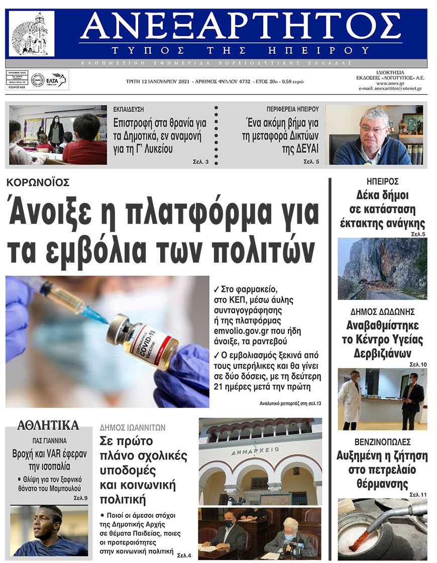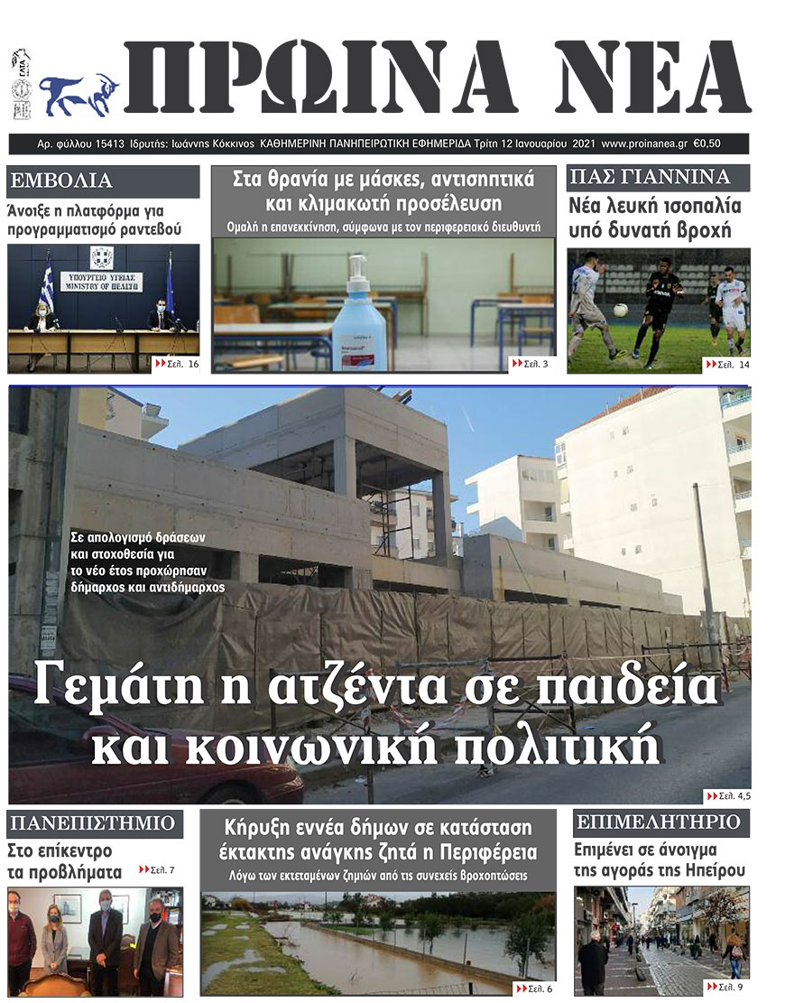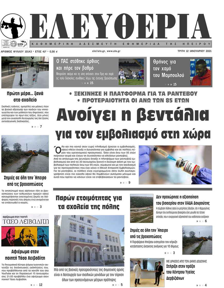 ΑρχικήΕΙΔΗΣΕΙΣΗΠΕΙΡΟΣ ΗΠΕΙΡΟΣ Τα πρωτοσέλιδα των γιαννιώτικων εφημερίδων 12.01.2021 142 FacebookTwitterWhatsAppEmailΤυπώνωViber Διαβάστε στα πρωτοσέλιδα των γιαννιώτικων εφημερίδων της Τρίτης 12 Ιανουαρίου TagsΓΙΑΝΝΙΩΤΙΚΕΣ ΕΦΗΜΕΡΙΔΕΣΠΡΩΤΟΣΕΛΙΔΑ FacebookTwitterWhatsAppEmailΤυπώνωViber Προηγούμενο άρθροΔωρεάν ασύρματο ίντερνετ θα αποκτήσει η Αρχαία ΔωδώνηΕπόμενο άρθροΔιαδικτυακή παρουσίαση των σχολών του Ευρωπαϊκού Πανεπιστημίου Κύπρου ΣΧΕΤΙΚΑ ΑΡΘΡΑ Τα πρωτοσέλιδα των γιαννιώτικων εφημερίδων TOP STORIES 20.11.2025 Τα πρωτοσέλιδα των γιαννιώτικων εφημερίδων ΗΠΕΙΡΟΣ 19.11.2025 Τα πρωτοσέλιδα των γιαννιώτικων εφημερίδων ΗΠΕΙΡΟΣ 18.11.2025 Τα πρωτοσέλιδα των γιαννιώτικων εφημερίδων ΗΠΕΙΡΟΣ 15.11.2025 Τα πρωτοσέλιδα των γιαννιώτικων εφημερίδων ΗΠΕΙΡΟΣ 14.11.2025 Τα πρωτοσέλιδα των γιαννιώτικων εφημερίδων ΗΠΕΙΡΟΣ 13.11.2025 ΣΤΗΝ ΙΔΙΑ ΚΑΤΗΓΟΡΙΑ Επικαλούνται τη συναίνεση, αλλά ενισχύουν τη σύγχυση ΗΠΕΙΡΟΣ 20.11.2025 Ζημιές από την κακοκαιρία στο Βαγκαλιάτι με πτώσεις δέντρων και κολώνας ΗΠΕΙΡΟΣ 20.11.2025 ΤΕΕ Ηπείρου: Αίτια, επιπτώσεις και στρατηγικές αντιμετώπισης της αιθαλομίχλης TOP STORIES 20.11.2025 Έντονες βροχοπτώσεις στην Ήπειρο – Δεκάδες περιστατικά για την Πυροσβεστική TOP STORIES 20.11.2025 Έκτακτο δελτίο επιδείνωσης από την ΕΜΥ – Εντείνονται οι καταιγίδες από τη νύχτα ΗΠΕΙΡΟΣ 20.11.2025 Στα χέρια της αστυνομίας δύο άτομα με γκλοπ και σπρέι πιπεριού ΗΠΕΙΡΟΣ 20.11.2025 ΜΗ ΧΑΣΕΤΕ Επικαλούνται τη συναίνεση, αλλά ενισχύουν τη σύγχυση ΤΕΕ Ηπείρου: Αίτια, επιπτώσεις και στρατηγικές αντιμετώπισης της αιθαλομίχλης Έντονες βροχοπτώσεις στην Ήπειρο – Δεκάδες περιστατικά για την Πυροσβεστική Έκτακτο δελτίο επιδείνωσης από την ΕΜΥ – Εντείνονται οι καταιγίδες από τη νύχτα Προϋπολογισμός 2026: Μείωση φόρων και ανάπτυξη πάνω από Ευρώπη ΔΗΜΟΦΙΛΗ Η NASA δημοσίευσε πρωτοφανείς νέες εικόνες του διαστρικού κομήτη 3I/ATLAS Επικαλούνται τη συναίνεση, αλλά ενισχύουν τη σύγχυση Μόνιμες θέσεις στάθμευσης ζητούν οι κάτοικοι της Κουντουριώτου Εντυπωσιακή άνοδος της στάθμης της Παμβώτιδας μετά τις συνεχείς βροχοπτώσεις Ποινική δίωξη για επικίνδυνη οδήγηση στη Δήμητρα Ματσούκα