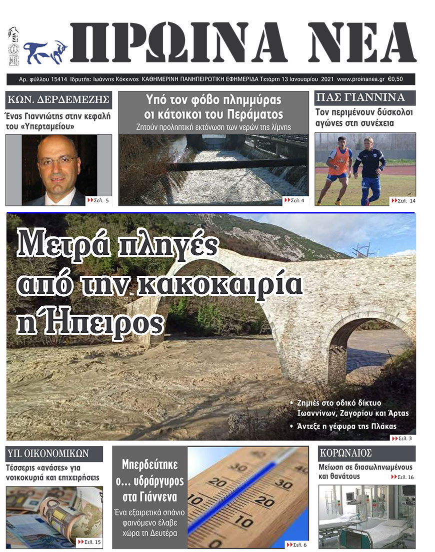 Διαβάστε στα πρωτοσέλιδα των γιαννιώτικων εφημερίδων της Τετάρτης 13 Ιανουαρίου